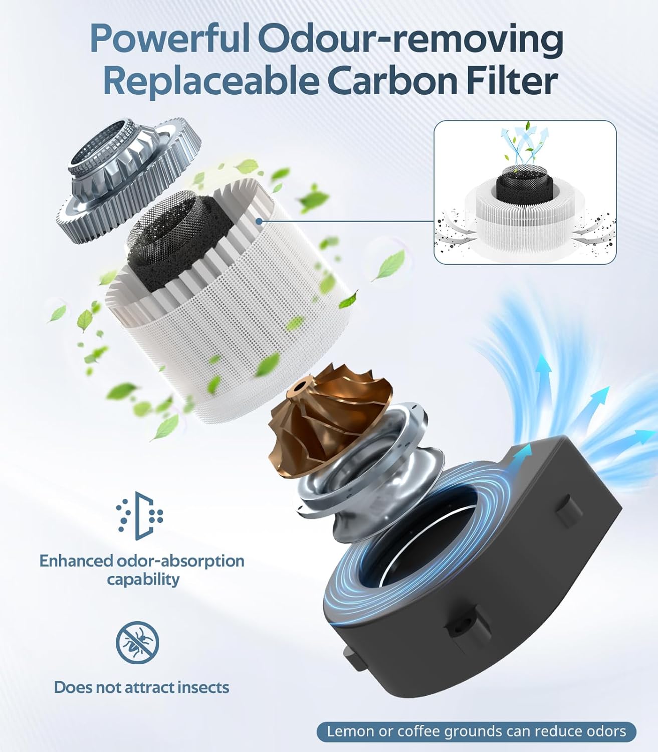 • 【Odorless & Easy to Clean】With our Smart Indoor Composter, the odor and insect problems associated with the traditional composting method will be solved. Adding things like lemon and coffee grounds to the drying bucket can also help reduce unpleasant odors. This smart composter has an auto-cleaning function, so you can easily enjoy the fruits of composting at the touch of a button without having to worry about cleaning the compost bin.