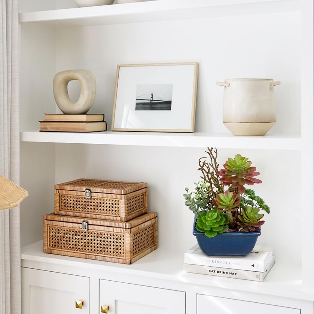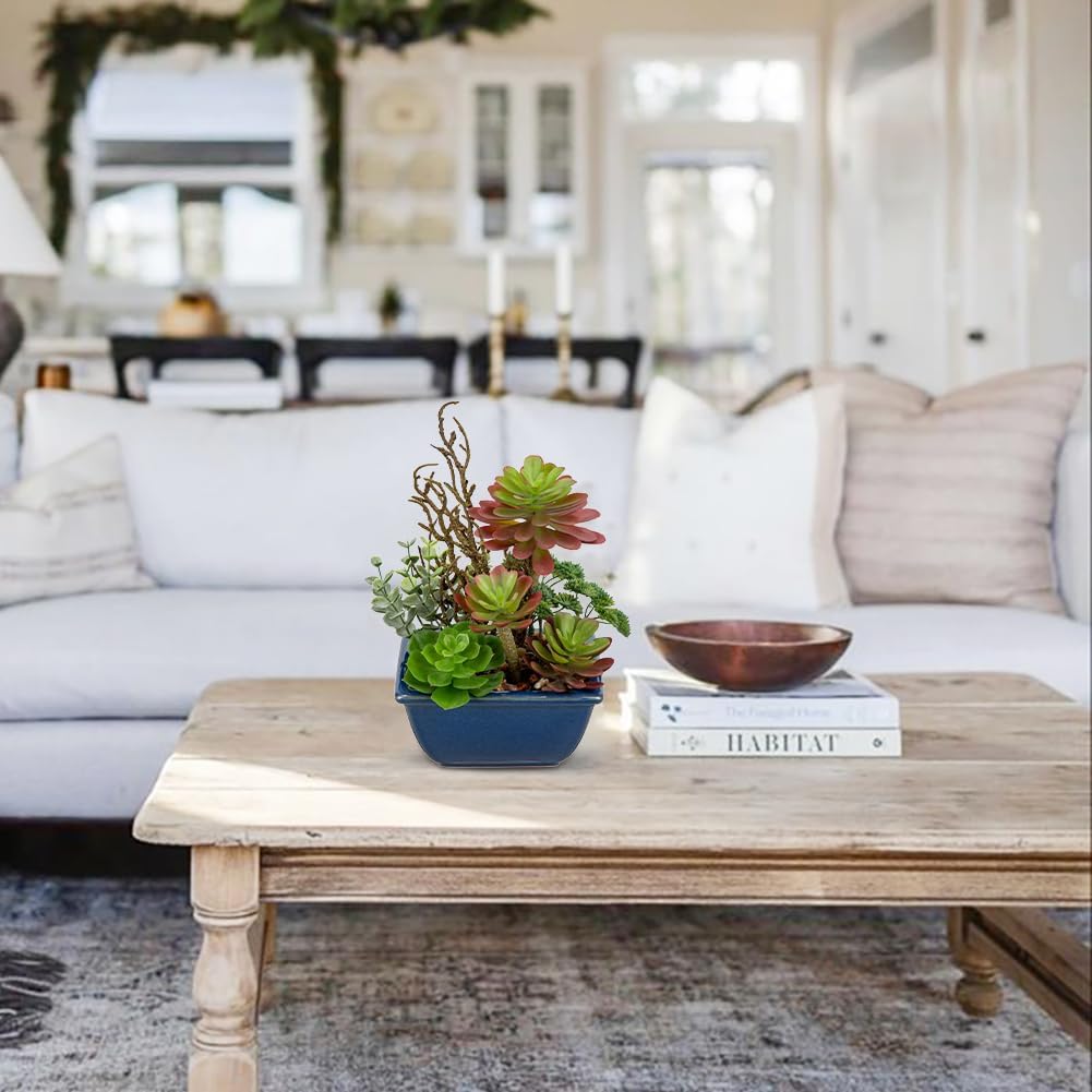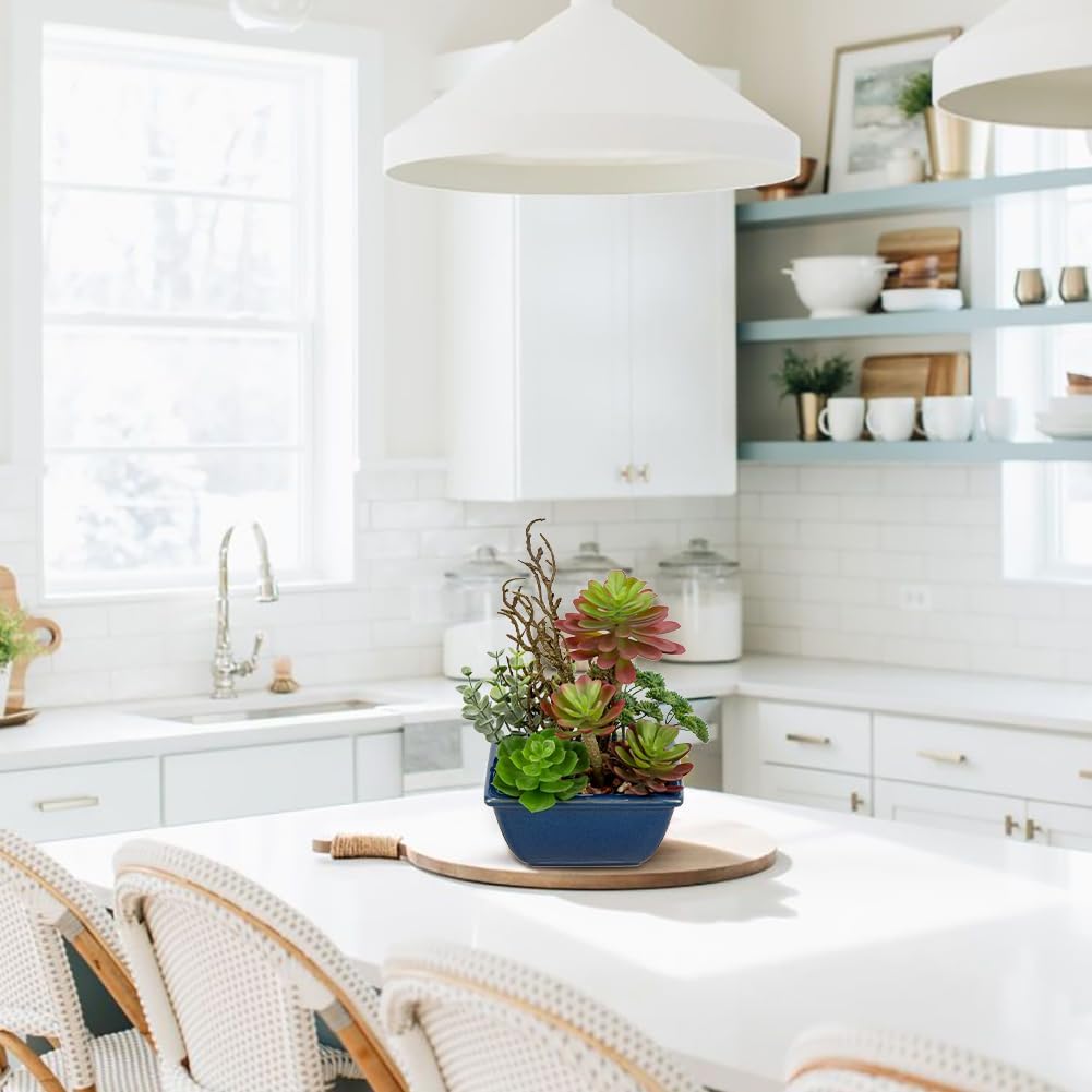 • Artificial succulents in pots subtly enlighten indoor decor with their bright color, potted plants artificial decor are unique in their own way which makes them look like a real succulent decor exhibition. Artificial potted plants decor: Small fake succulents are perfect for home, office desk, bedroom, bathroom shelf, kitchen, apartment, cafe, etc, faux plants in pots will add a natural accent to your home decor.