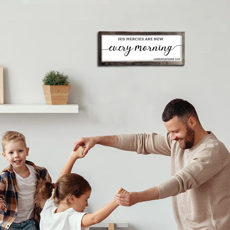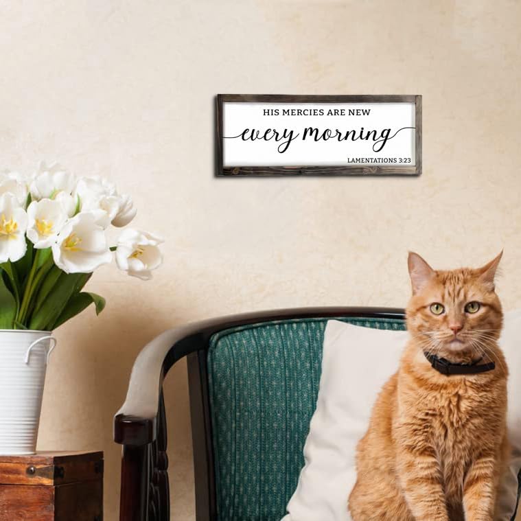 Dazingart Farmhouse Bible Verse Sign, His Mercies Art New Every Morning, Scripture Wall Decor Baptism Lord Is Faithful Sign (Every Morning)