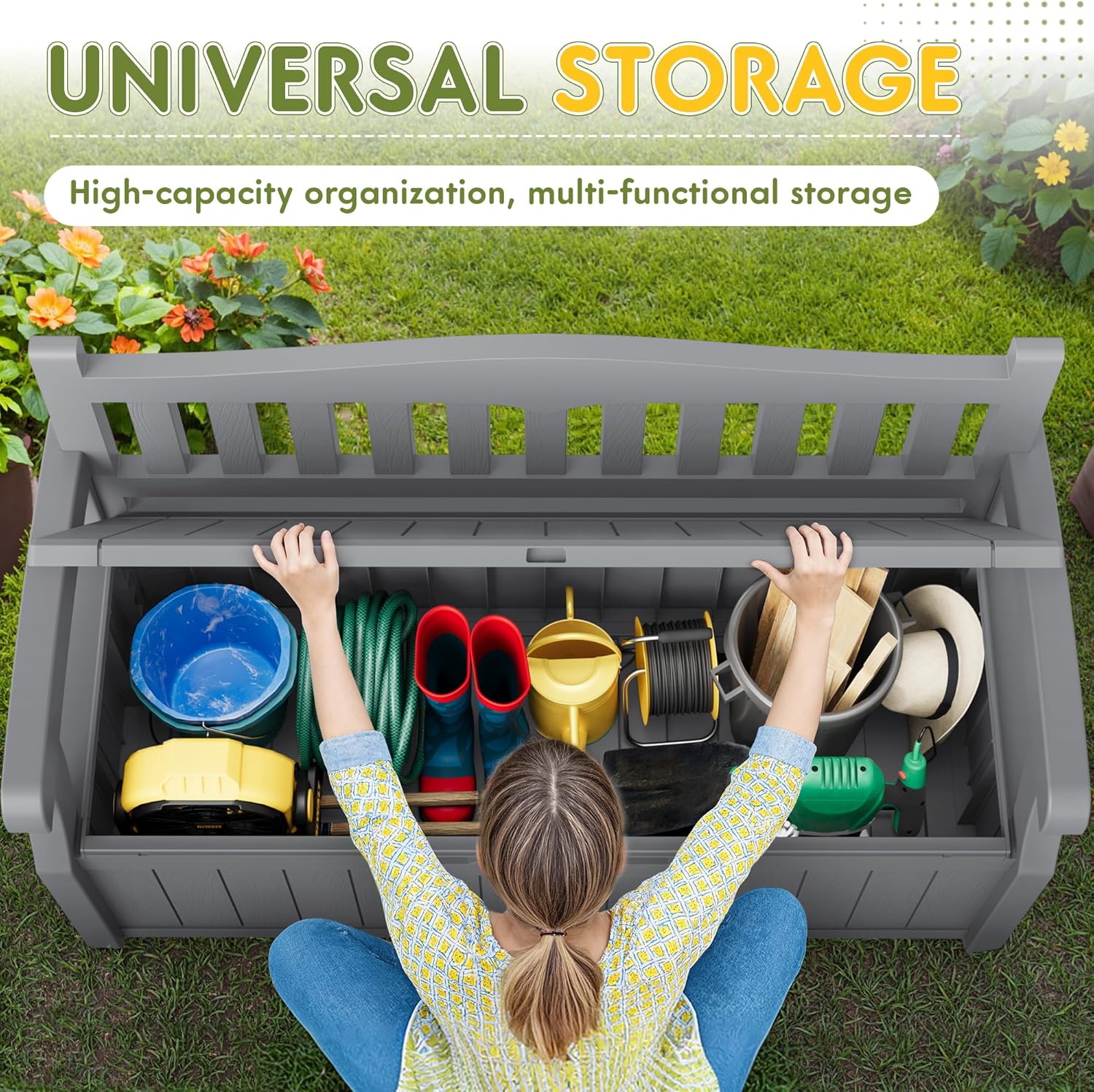 Greesum 80 Gallon Storage Bench Outdoor Deck Box with Armrest, Patio Furniture,Lockable, Waterproof and UV Resistant, Suitable for Garden, Pool, Grey