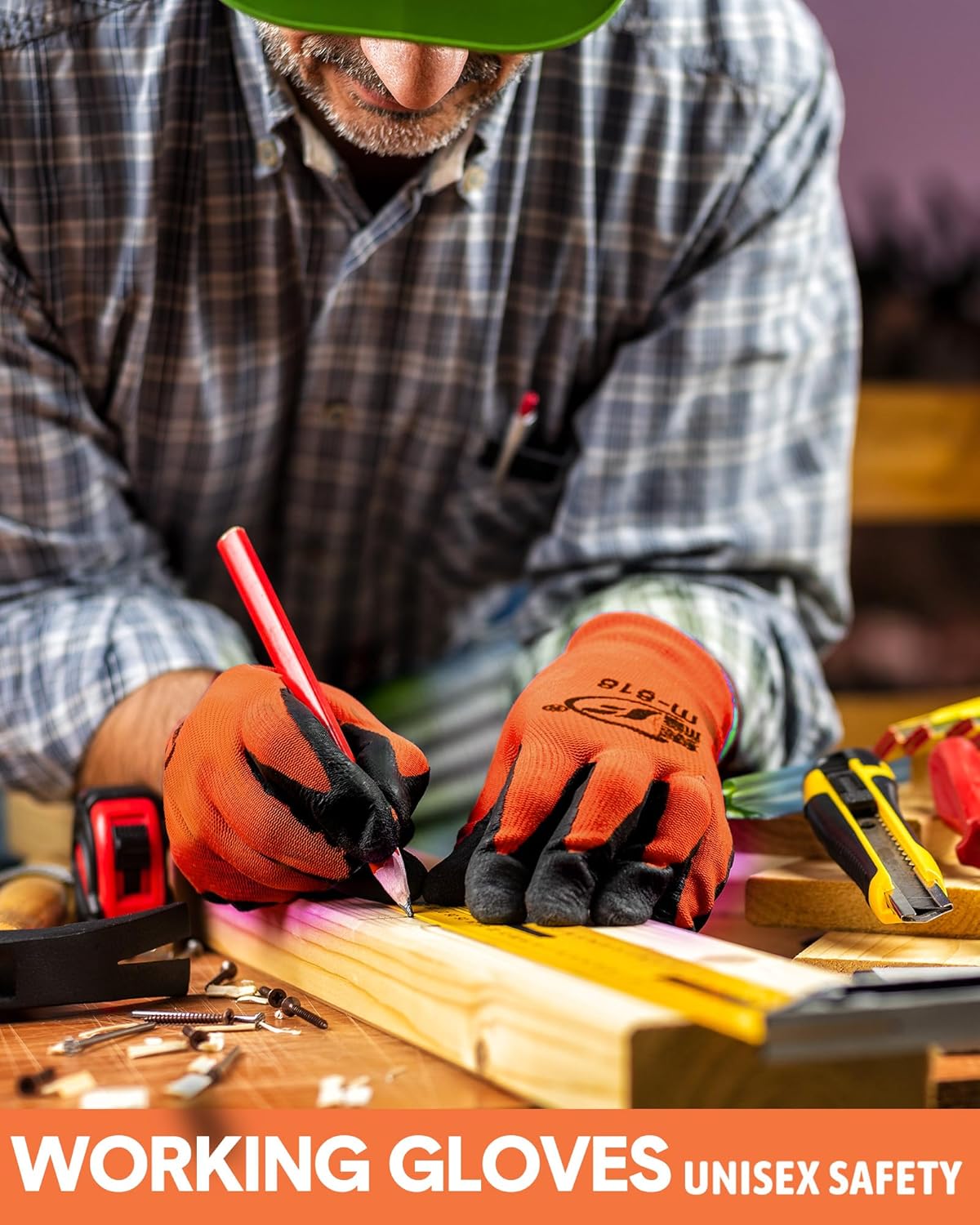 Nuogo 24 Pairs Gardening Gloves for Men Women Rubber Coated Landscaping Work Gloves Safety Work Construction