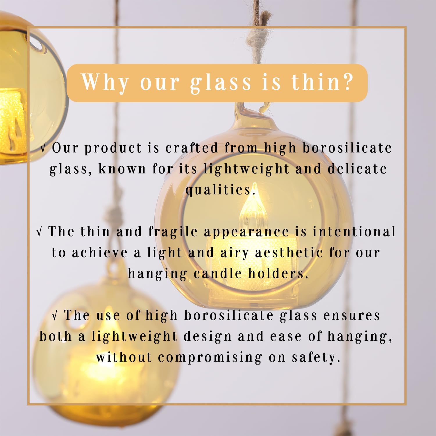 • Safety Note: To ensure the safety and longevity of these glass orbs, we strongly advocate for the use of flameless or LED candles instead of real candles.Enjoy the ambient lighting worry-free and with utmost safety.