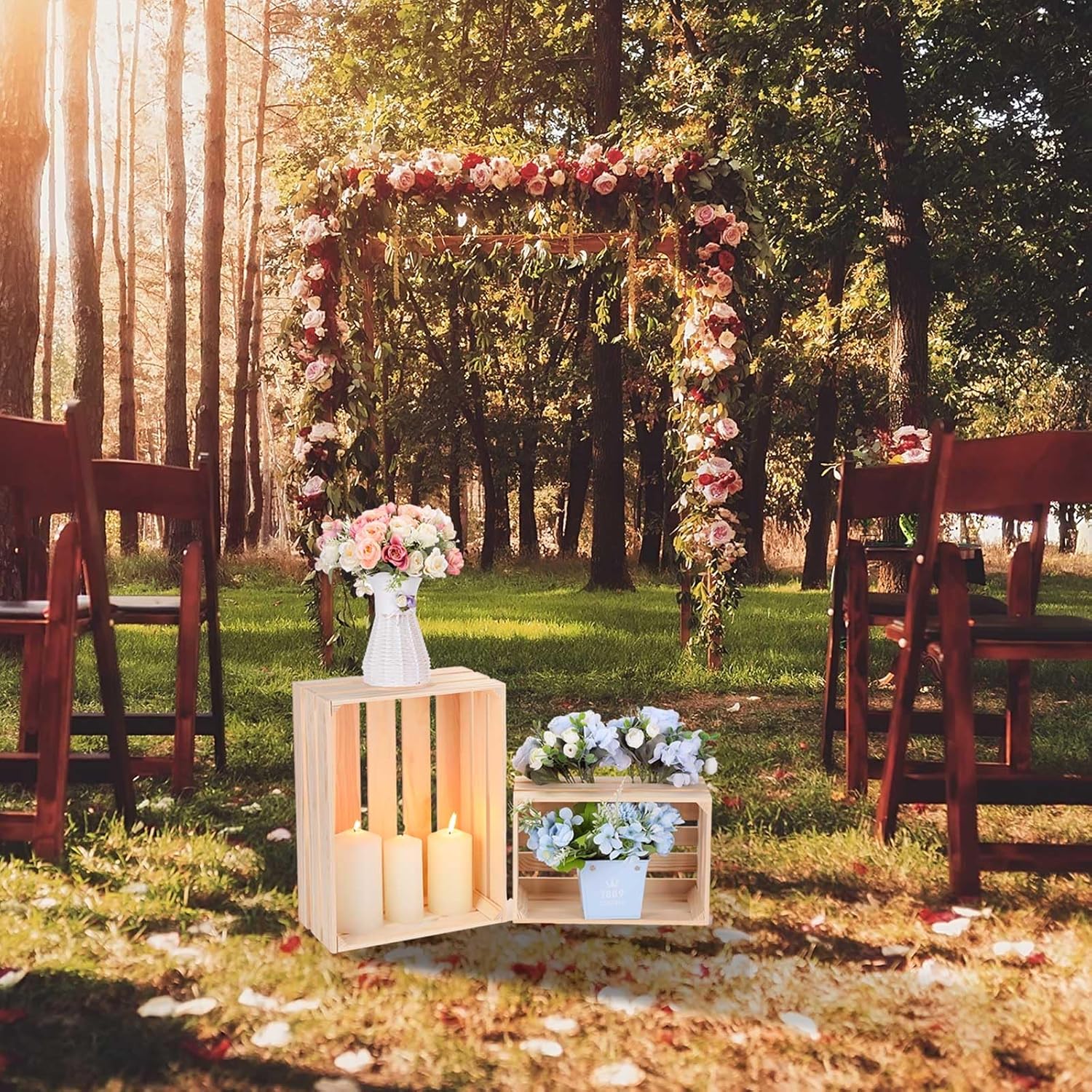 • Beautiful Rustic Appeal: constructed from quality pine, these 5 decorative wooden crates are a stunning addition to any event or decoration style; Ideal for rustic weddings, Christmas parties, they can effortlessly accommodate decorations like flowers, champagne bottles, or picture frames, further enhancing their appeal; The natural beauty of these wooden boxes adds a charming rustic touch to your space, meeting your requirements properly