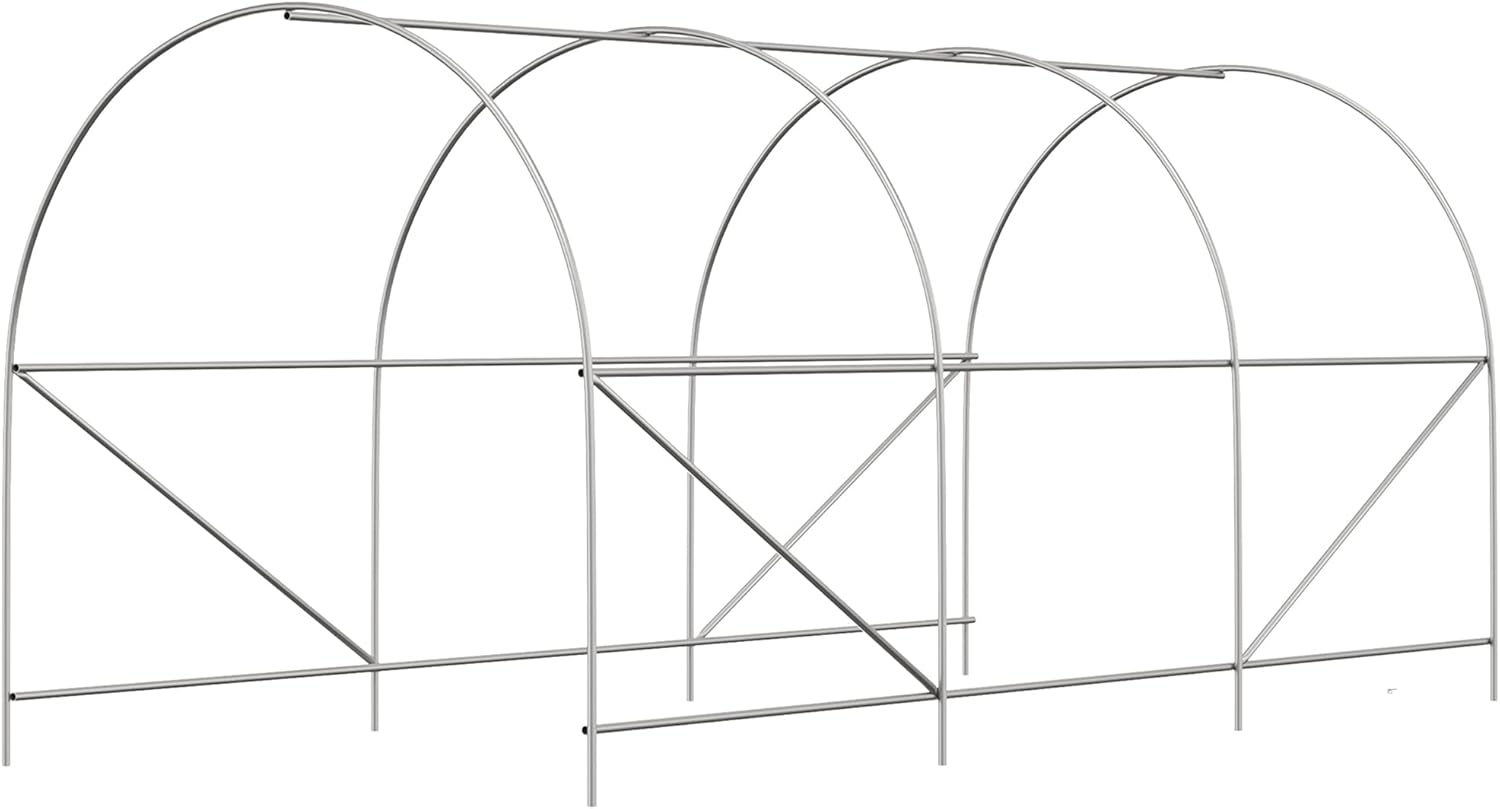 • Robust Steel Frame: Constructed with a heavy-duty galvanized steel frame, our high tunnel greenhouse resists water damage and remains free from chipping or peeling. It includes four slant supporting rods. Secure the structure using the provided four guy ropes and support stakes on soft surfaces.