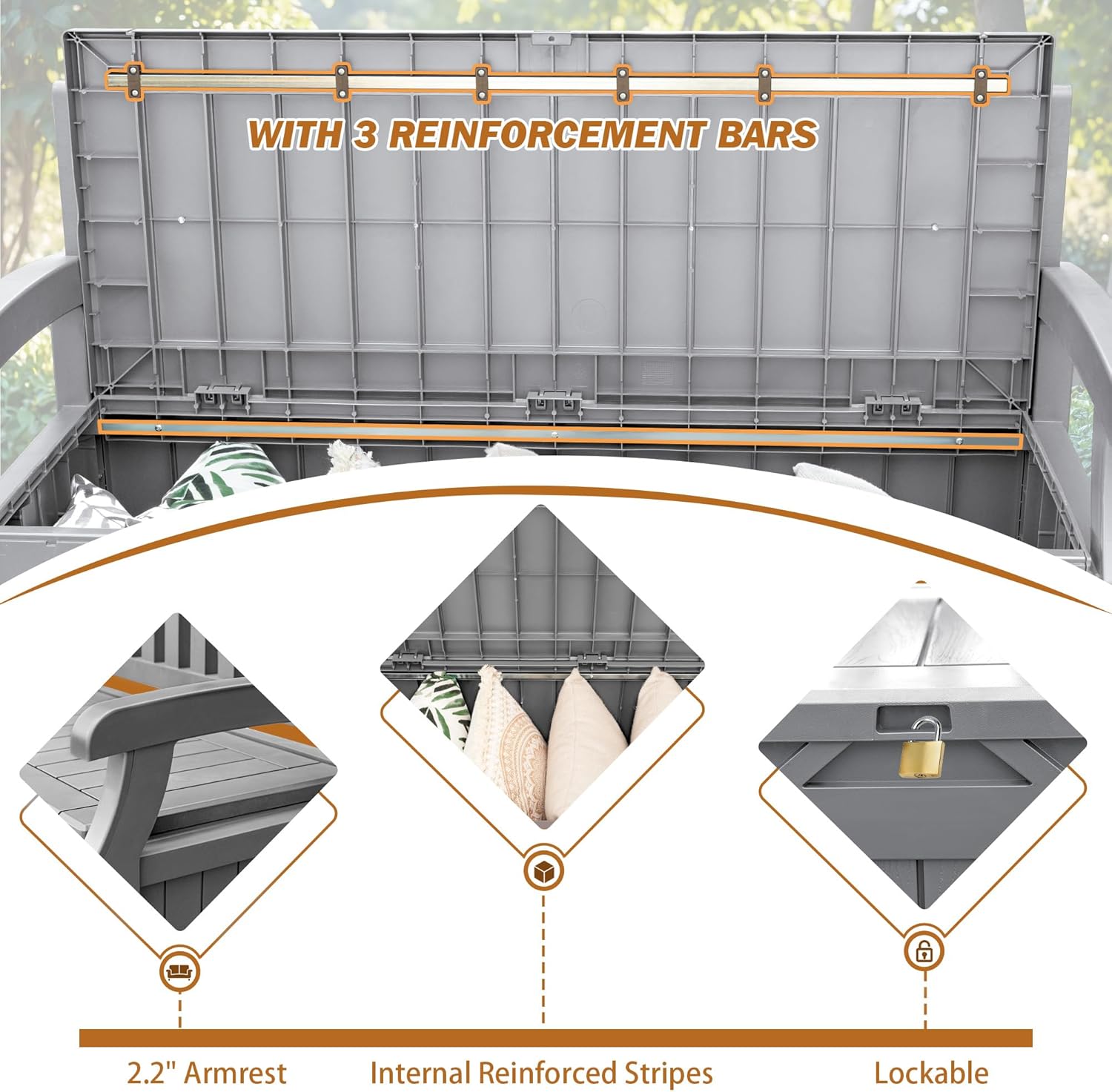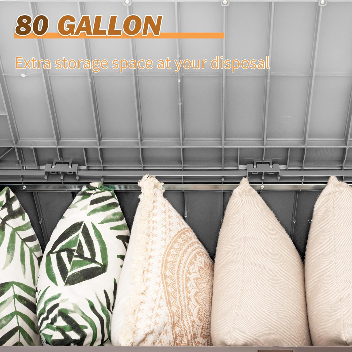 Devoko 80 Gallon Storage Bench Deck Box Lockable for Patio Furniture, Garden Decor and Outdoor Seating for Cushions, Garden Tools and Pool Supplies (Grey)