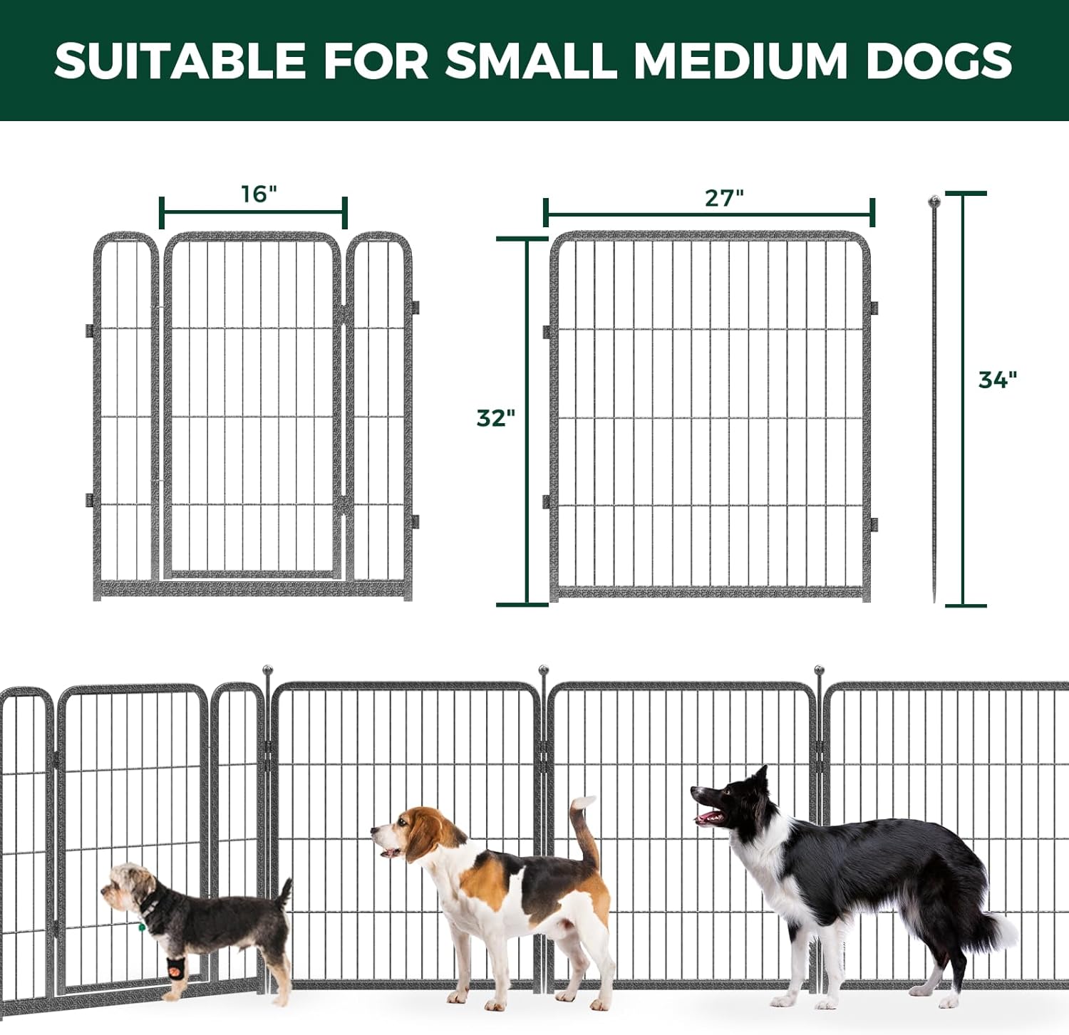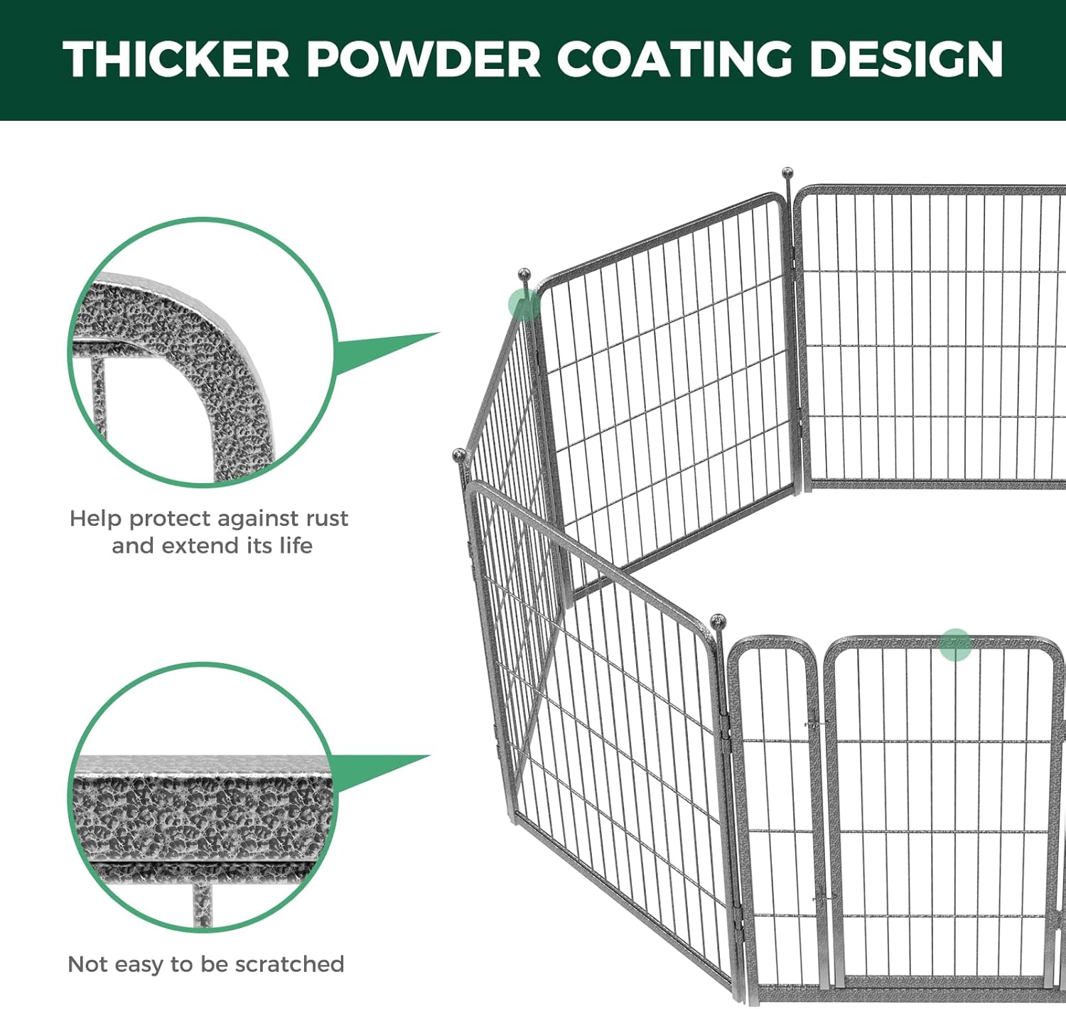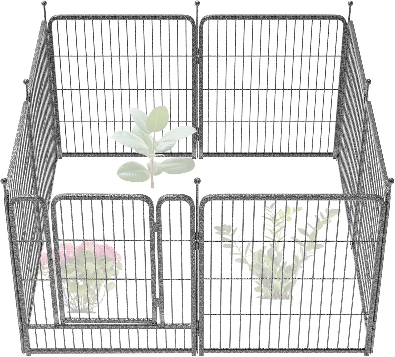 FXW Garden Fence Outdoor for The Yard – 32in(H) x 18.2ft(L) Heavy Duty Metal Animal Barrier for Dog and Rabbit, Decorative Dog Fence, 8 Panels, Silver