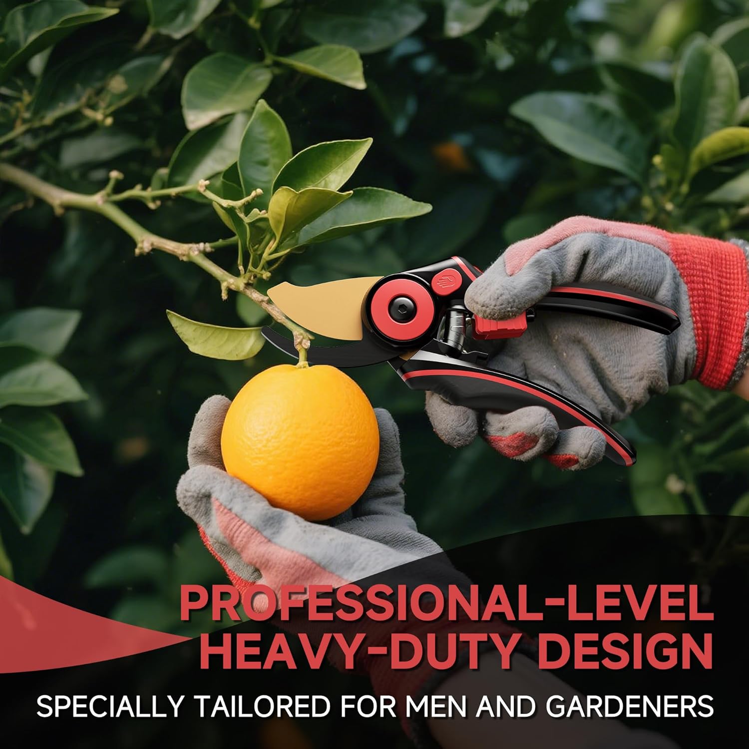 • "⚙【Professional Heavy-duty Design】Optimized for high-intensity work scenarios such as orchards, nurseries, and large courtyards, these tree trimmers meet the daily pruning needs of professional gardeners. Reinforced aluminum alloy one-piece molded handle, anti-twisting, making it easier for male users to hold and exert force. As a set of professional-grade pruning scissors and plant snips, they are the ultimate solution for cutting trees, grapevines, and woody old branches."