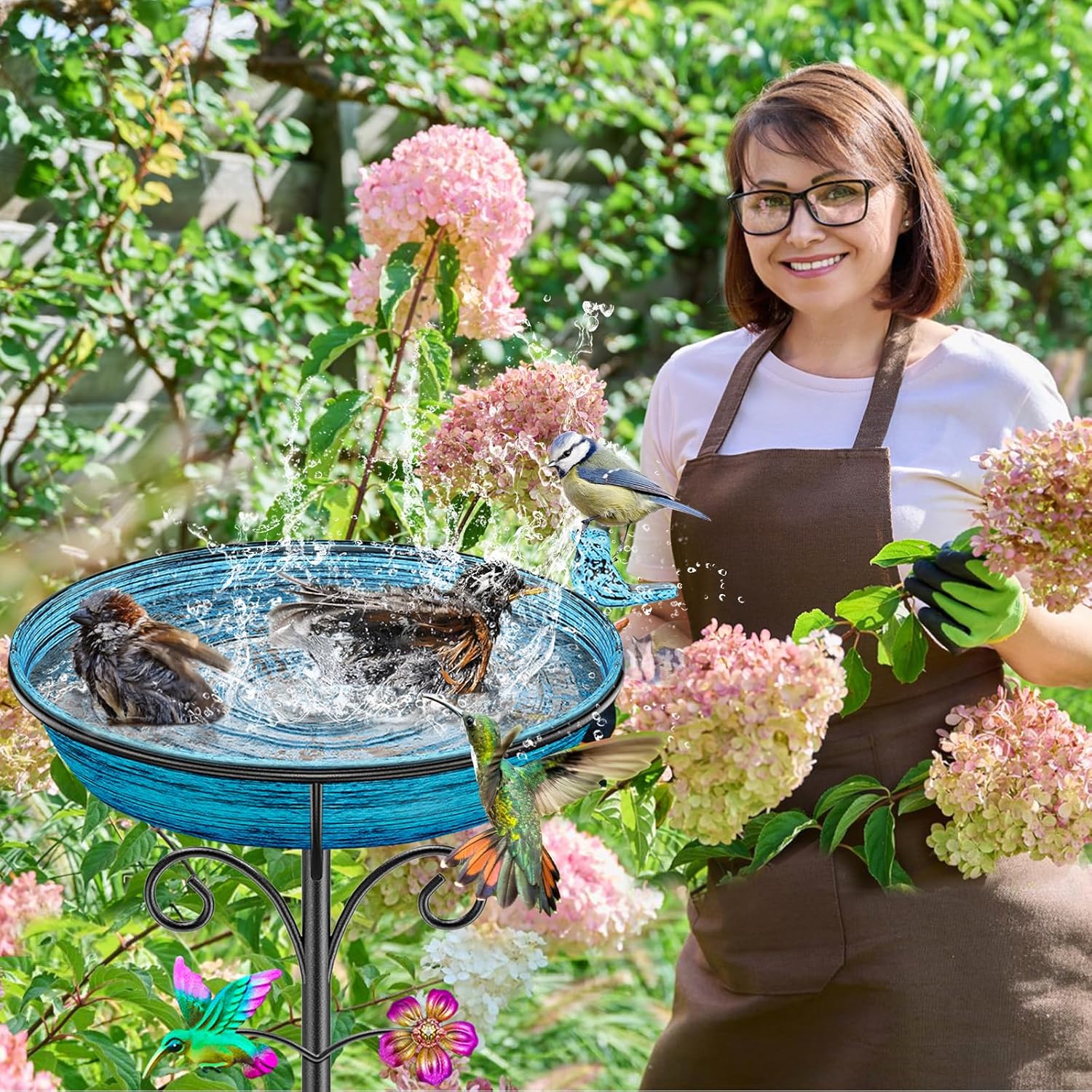 • 【Bird Bath Bowl】This bird bath is ideal for attracting all types wild birds. Your mounted bird bath will help you feel closer to nature, Very suitable for wild birds and hummingbirds to drink and bathe, Colorful hummingbirds and sunflower decorations make the bird bathtub more ornamental.