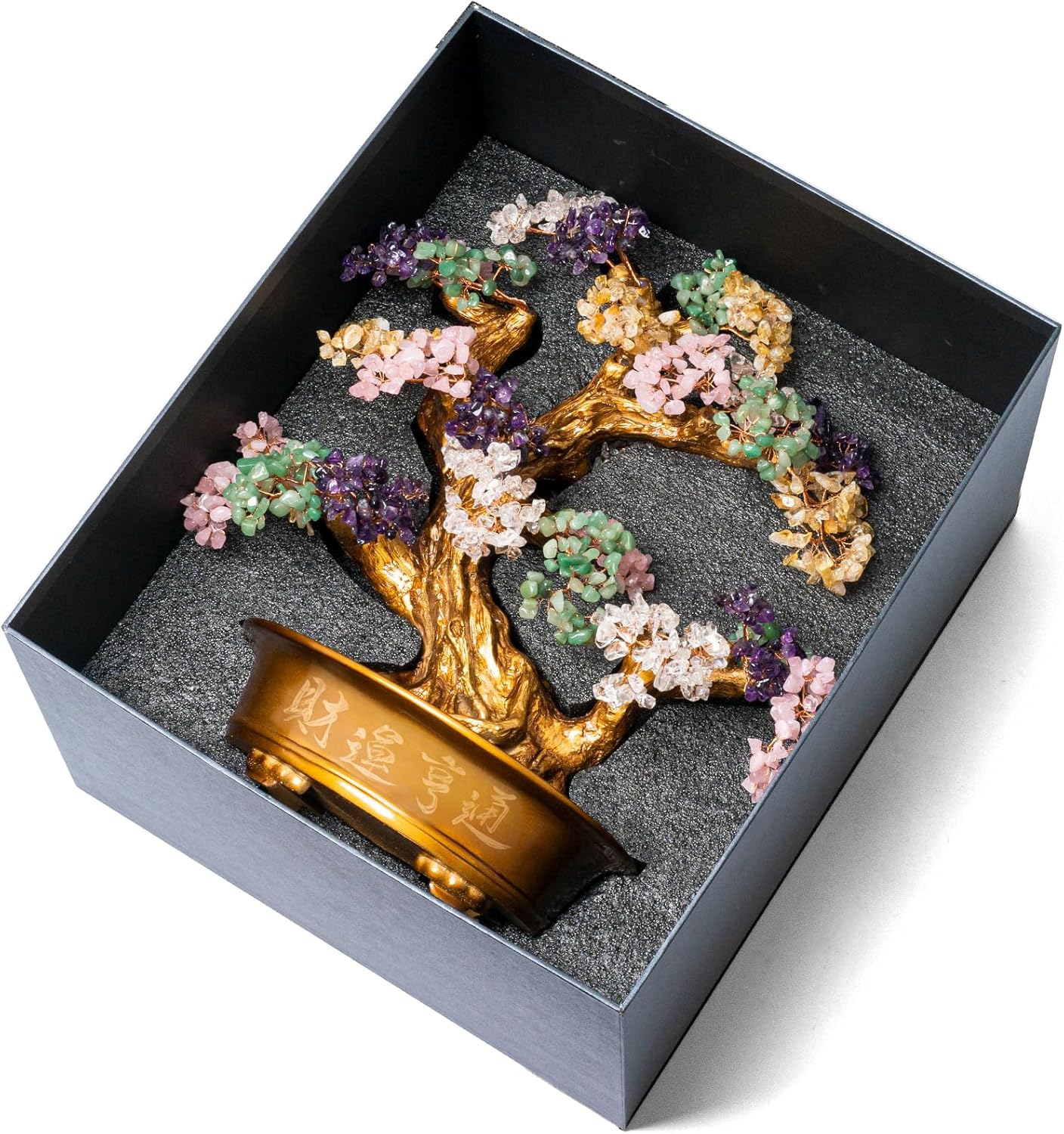 • ✔️PRODUCT SIZE: This tree stands about 20 inches tall. Bonsai Trees are held in a Gold Resin Tree Base resembling that of the most impressive natural bonsai specimens. This Gold Painted Resin and Wood Base Gracefully Fit on any Surface you Choose to Put it on. Our Crystal Bonsai Tree weighs 7000grams, come with an elegant black box, nicely packaged for a gift.