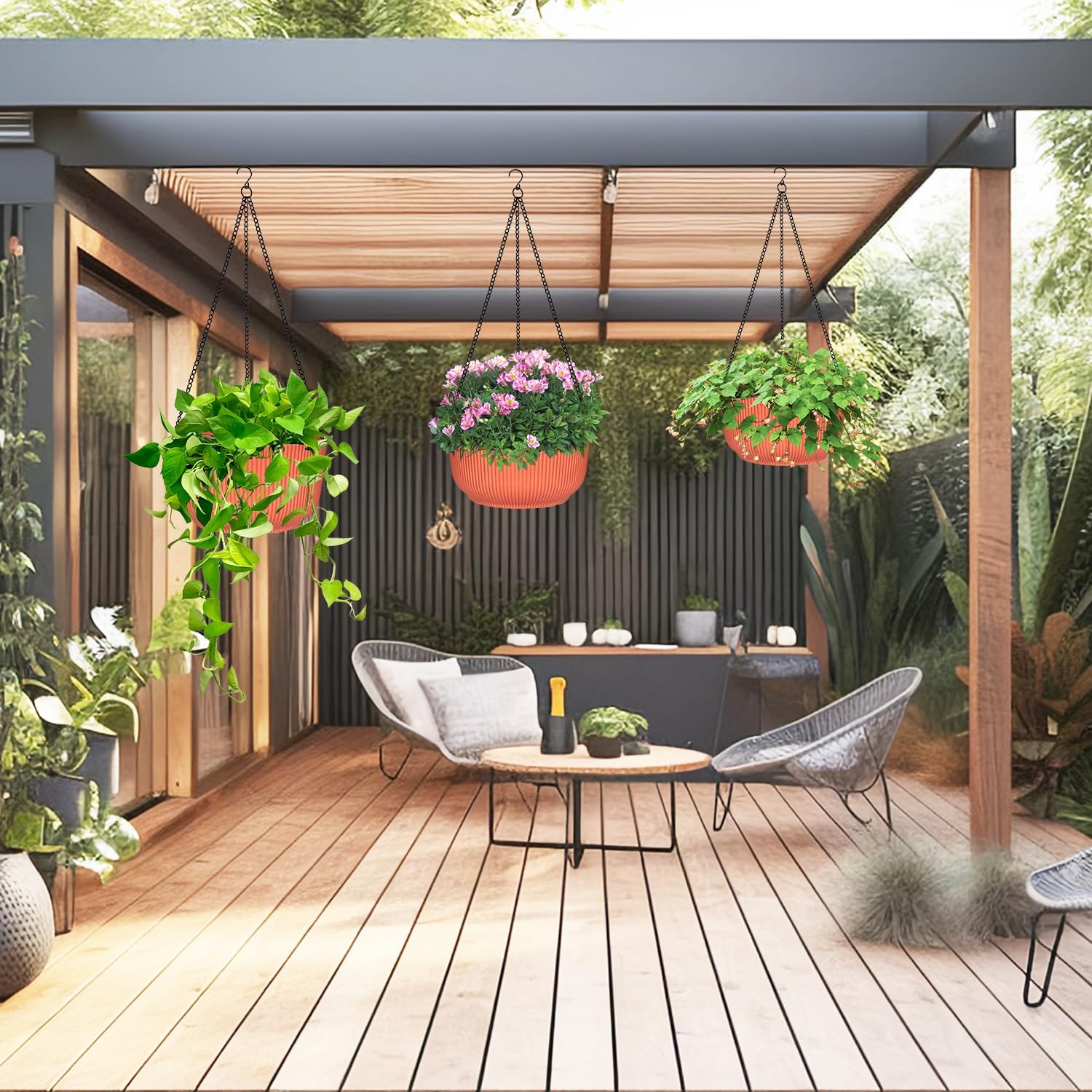 • Durable Quality Hanging Basket: Crafted from thick PP material with rust-resistant metal chains, these hanging pots are built to last, offering both style and strength for your gardening needs