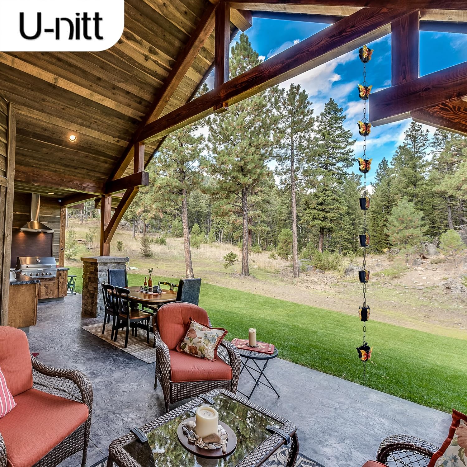 • EASY INSTALLATION - makes setting up your U-nitt gutter rain chain a breeze! With the included gutter clip and S-hook, you can quickly attach it to your existing roof gutter system without the need for special tools or professional help. Simply drop the gutter clip in gutter hole, hang the chain, and watch as it elegantly channels rainwater. Designed for convenience, this hassle-free setup lets you instantly upgrade your home's exterior with a functional and decorative water feature.