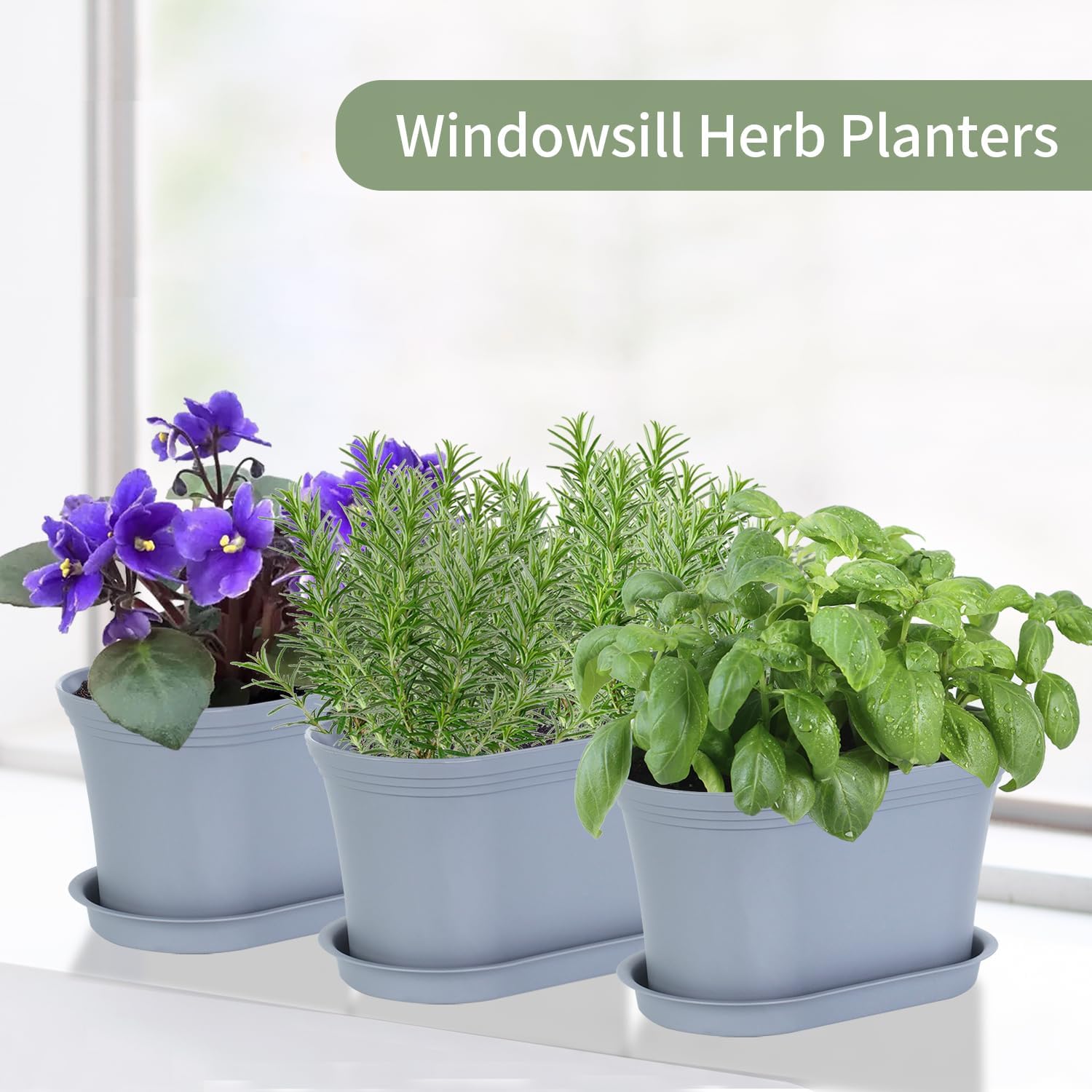 • Window herb garden kit: Each pot measures 7.2"L × 3.7"W × 3.9"H, and the tray is 6.8"L × 3.9"W × 0.8"H, which allows you to plant and nurture a variety of herbs like mint, rosemary, and basil. These planters are specifically designed to accommodate herbs, providing the ideal environment for their growth.