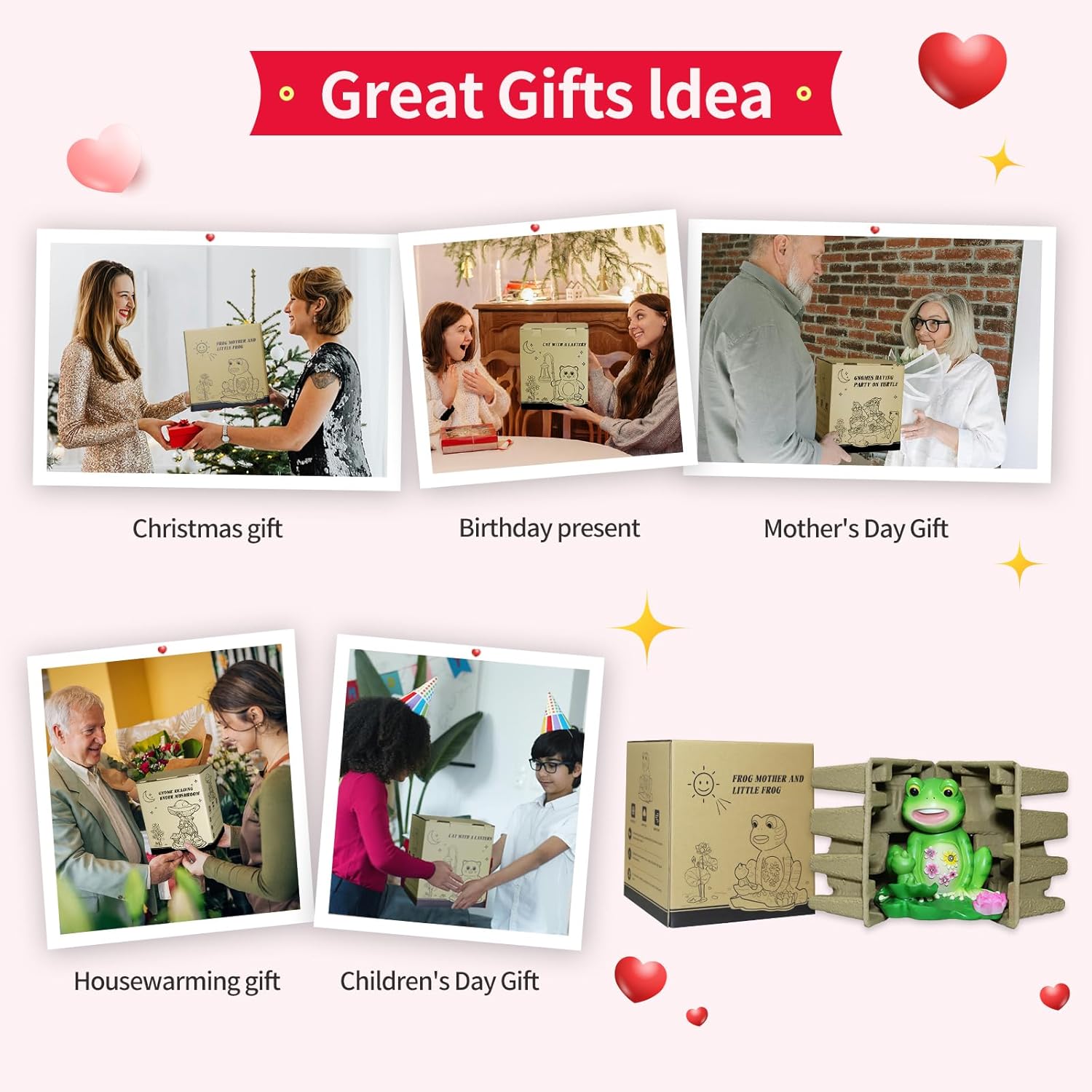 • Perfect Gift for Any Occasion: The uniquely designed solar powered "Frog Mother And Little Frog" statue is not only the best gift for birthdays, Christmas, Mother's Day, Father's Day, New Year, Thanksgiving, Easter, Valentine's Day, but also the best gift for any occasion. It can be given to frog enthusiasts, gardening enthusiasts, lovers, husbands, wives, mothers, fathers, sons, and daughters.
