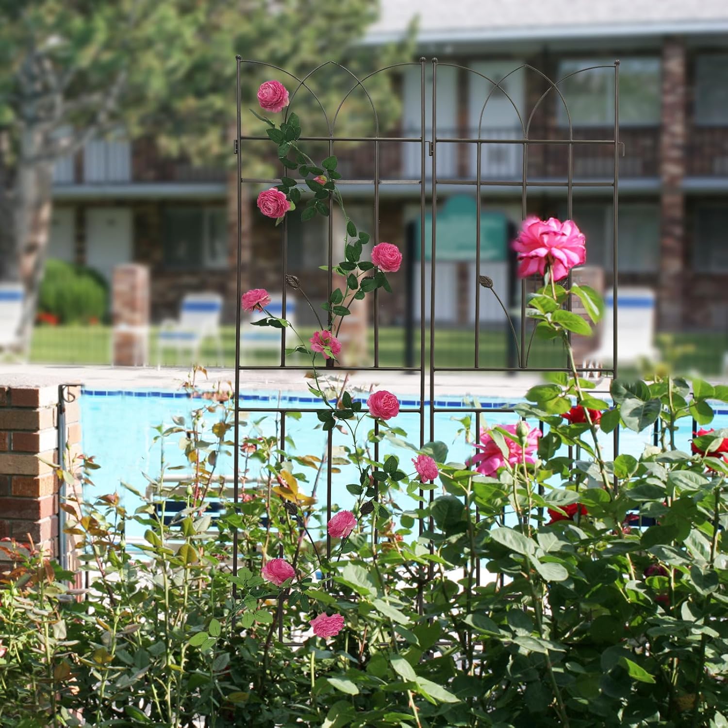 • Plants Supporting Trellis: This brown metal garden trellis is perfect for supporting all kinds of flowering trellis plants, wall-climbing vines. It allows them to grow naturally up towards the top.