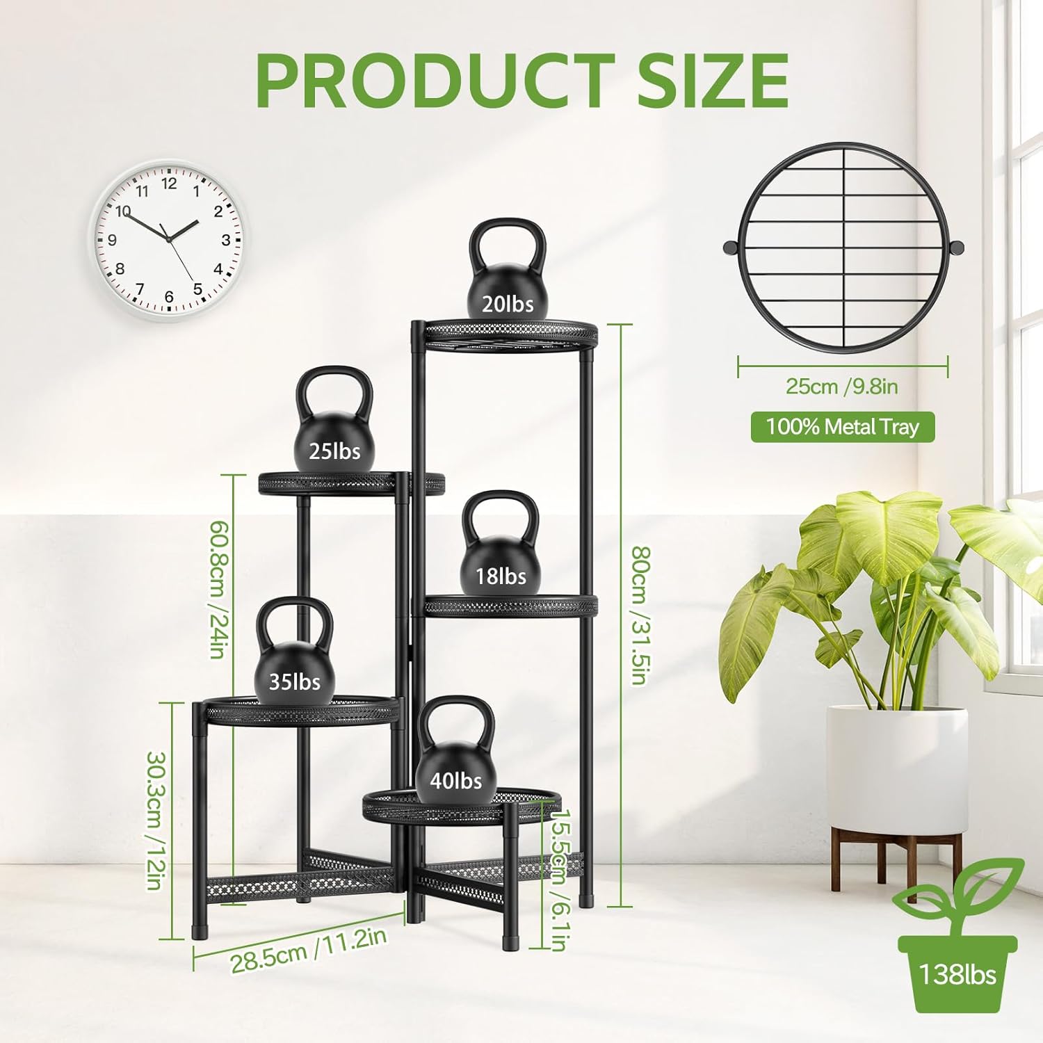 • Unique Modern Style Holder: The 5 tier plant stand is designed with a unique spiral tiered structure that can hold up to 5 pots without blocking each other, so that each of your plants can fully enjoy the sunlight. Modern and classic in style, this outdoor plant stand is perfect for decorating balcony, porch, garden, patio, window and office