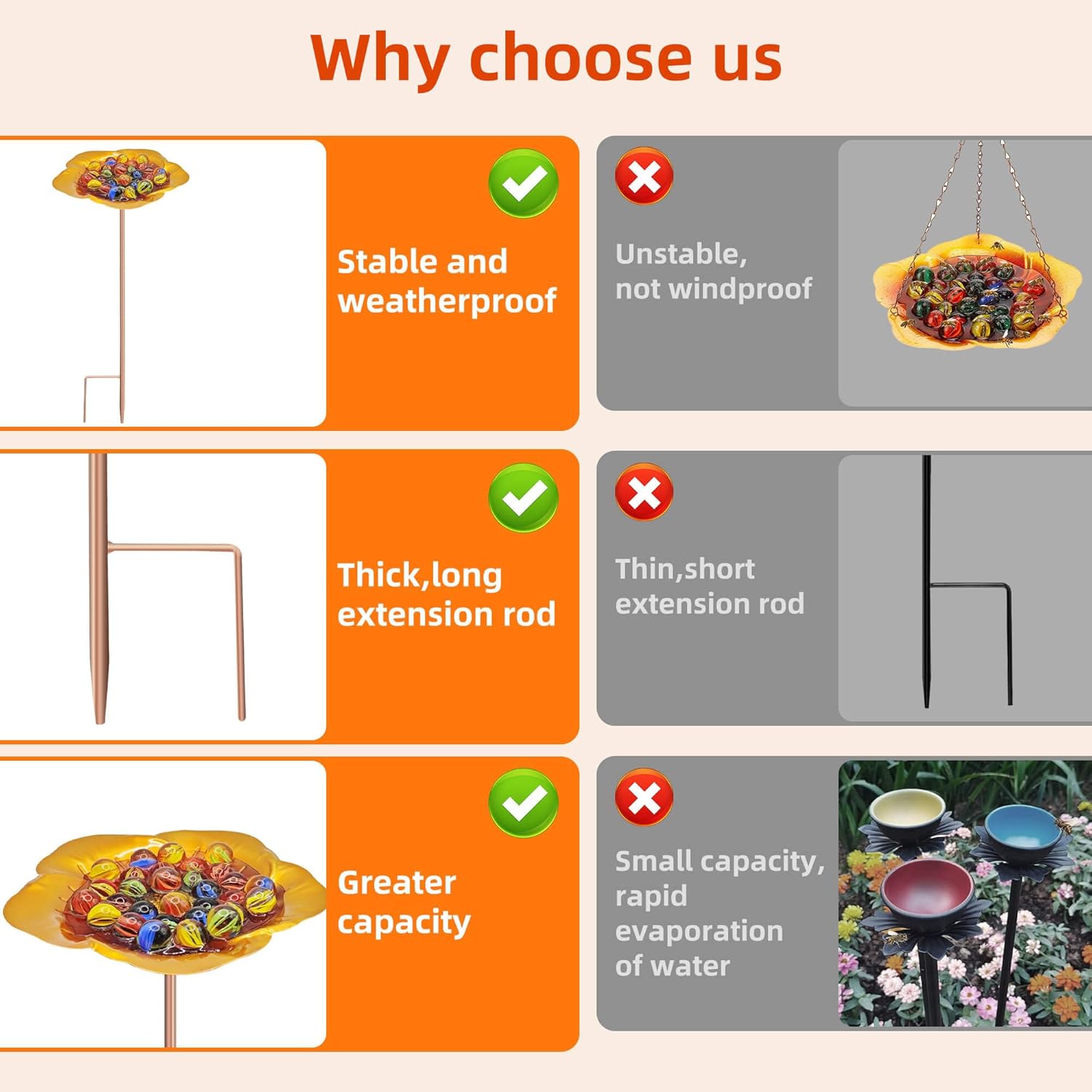 • 😘【More Stable and Not Afraid of Wind and Rain】:Compared with hanging bee feeders, our standing bee feeders for outside is more stable,stable prong base deep into the soil,will not shake even in bad windy weather. Keeps the bees safe to drink.Bee watering station for garden is made of metal and lasts for years.