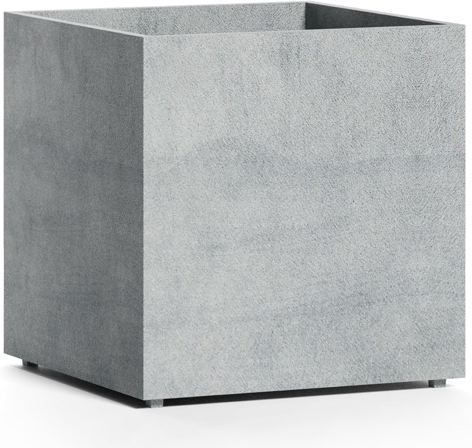 Reglito Cube Planter – Fiberglass Indoor/Outdoor and Weather-Resistant Large Planter (Concrete Stone, 19.7" L x 19.7" W x 20.3" H)