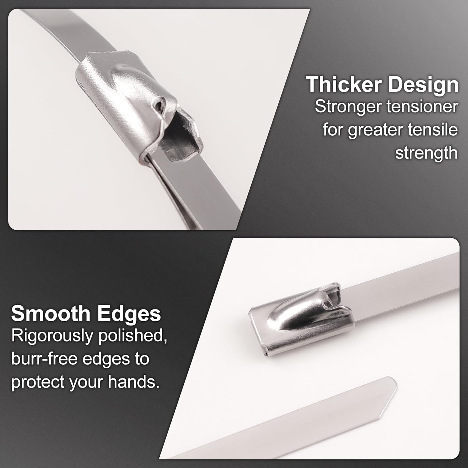 • Excellent Performance: Foneso stainless steel zip ties heavy duty are made of high-quality 304 stainless steel metal material, offering better corrosion resistance, rust prevention, UV resistance, and high temperature durability compared to traditional plastic, galvanized, and aluminum zip ties