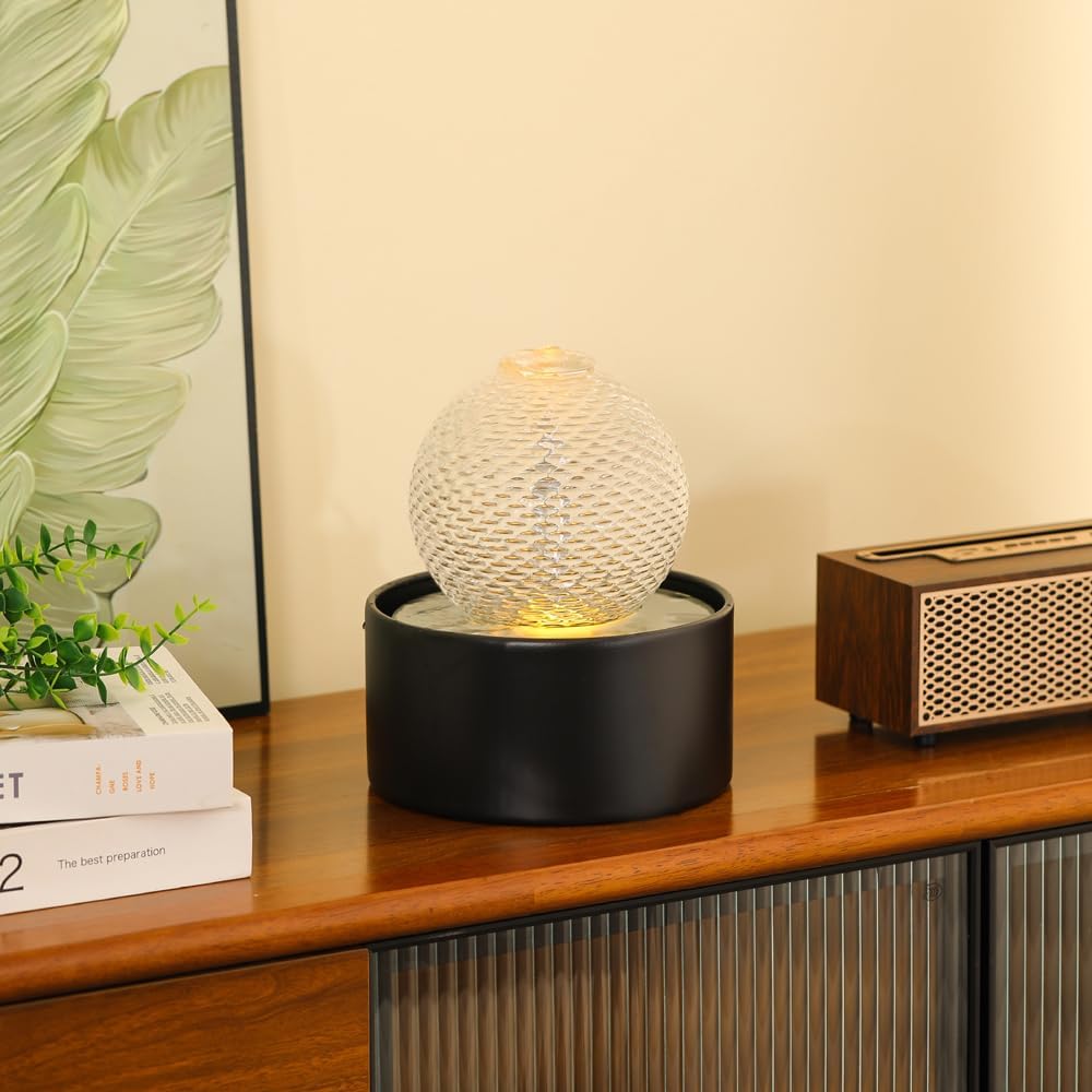 Generic Indoor Water Feature Tabletop Ceramic Fountain Home Kitchen Office Decoration Modern Design Style (Black)