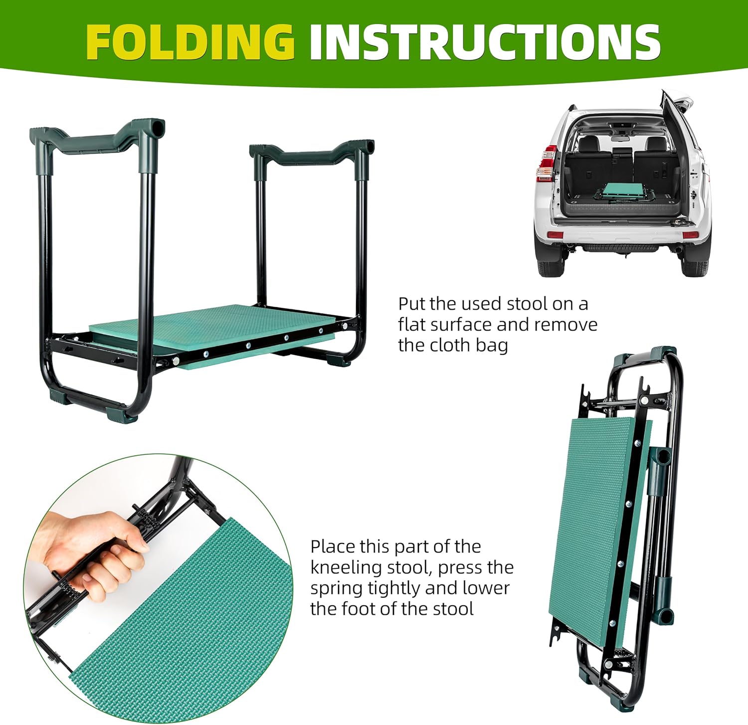 Garden Kneeler and Seat Gardening Stool Heavy Duty Garden Kneeling Bench with Handles Seat Bench Comes with Tool Pouch & Gloves Gardening Gifts for Seniors Women & Men (Green)