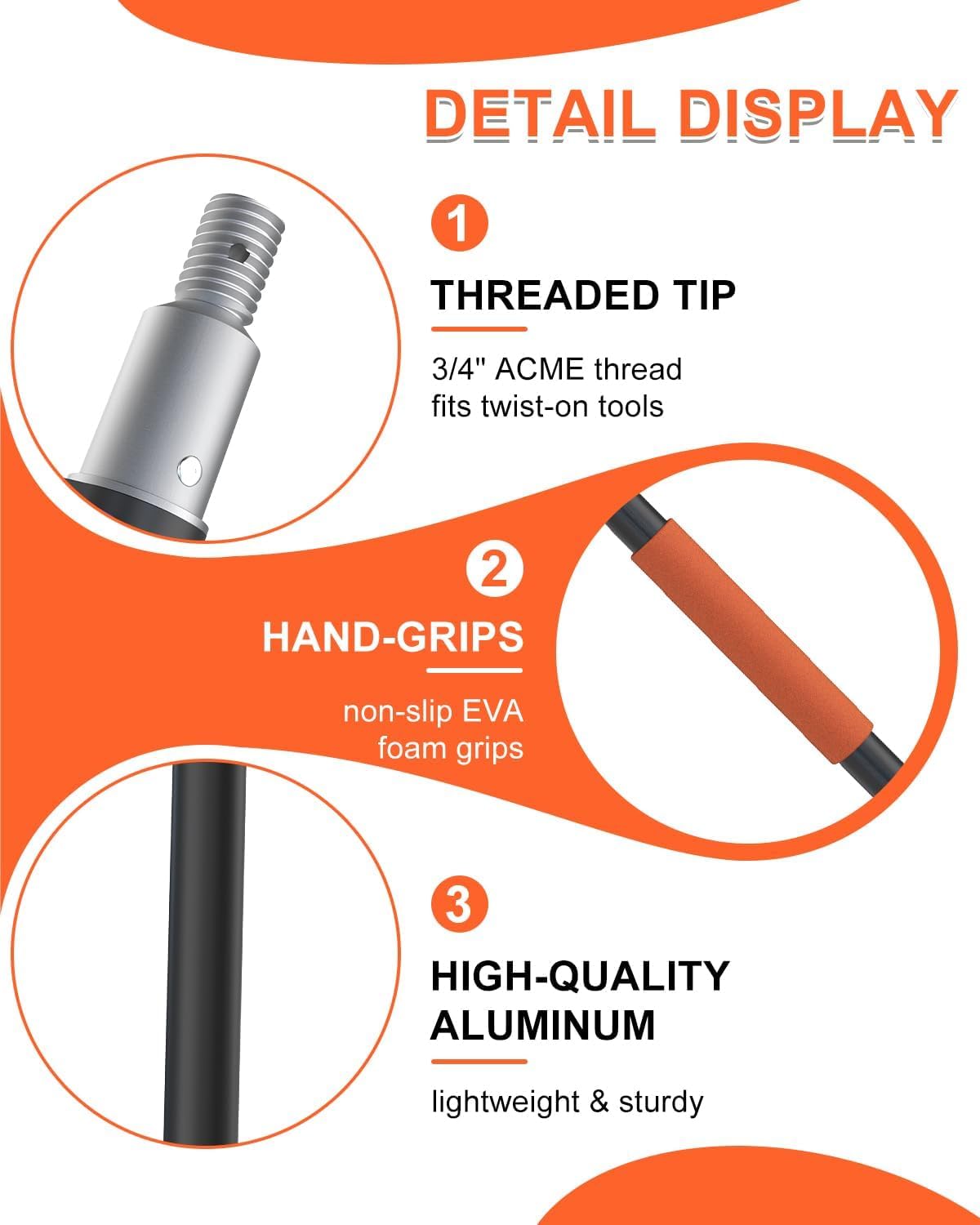• Reach Fruit Up to 26+ Foot When Standing - 5 to 20 foot telescoping fruit picker extension pole is made of duralumin, durable and strong 4 flip-tab locks design make the telescopic wand not easy to bend when extended. Non-slip foam handle on the bottom provides you a more comfortable and reliable grip, especially in wet condition. The Buyplus fruit picker provides you with the best fruit picking experience.