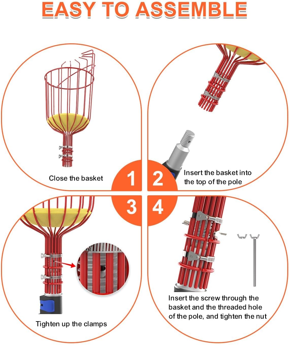 • Easy to Install - This Buyplus fruit picker only requires a few simple installation steps. Firstly, rotate the two metal clips to secure the fruit basket to the pole, then thread the butterfly shaped long screw through the holes on the pole and fruit basket, and finally secure it with a nut. Without the need for additional tools, the fruit picking basket can be easily and firmly fixed to the extension pole, effectively preventing the water fruit basket from falling off.
