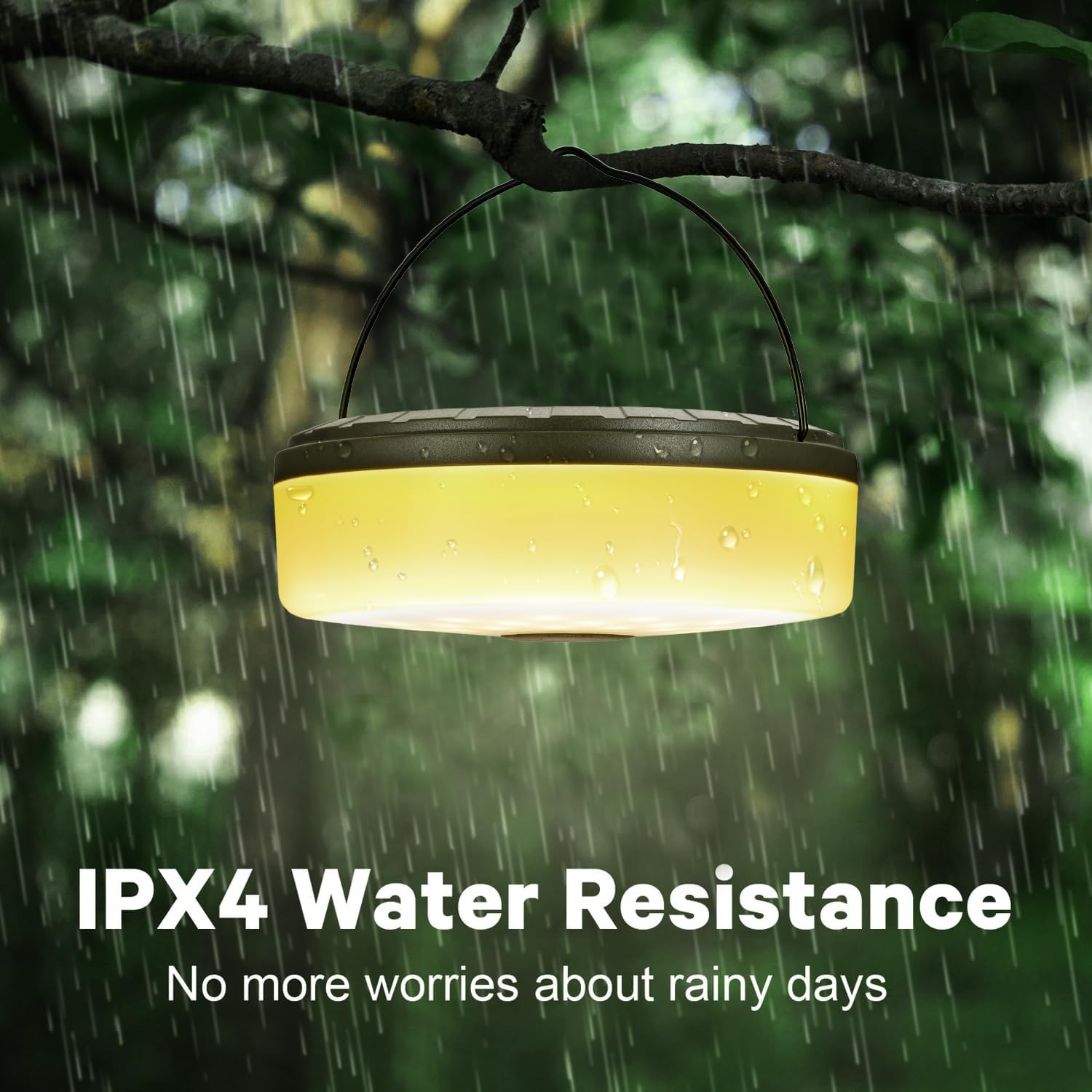 • 【Solar Powered & USB Rechargeable】This 3000mAh camping string lights features a high-efficiency solar panel and USB charging port. Both methods can be fully charged within 4-6 hours and provide up to 8 hours of continuous use. No matter what the weather is, you don't have to worry about charging issues.