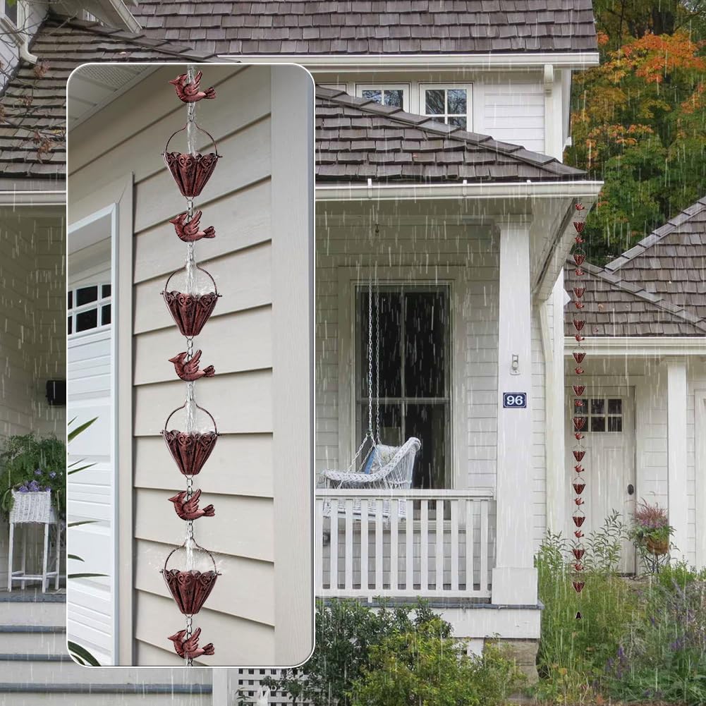 • Great Choice: This metal rain chain with hummingbird charms has retro and delicate shape, which is great as a present for friends and family on birthdays or holidays. If you have any questions after receiving the rain chain, please feel free to let us know and we will get back to you within 24 hours
