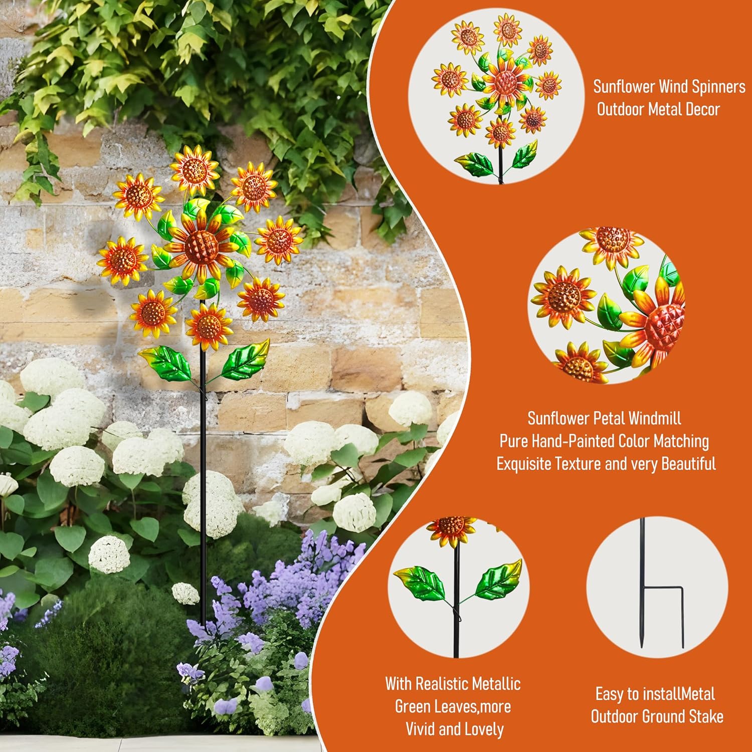 • WIDELY USED: The wind spinner adopts the design concept of sunflower shape, and it rotates very beautifully. It is a good choice for the courtyard garden and an exquisite gift for friends and relatives.