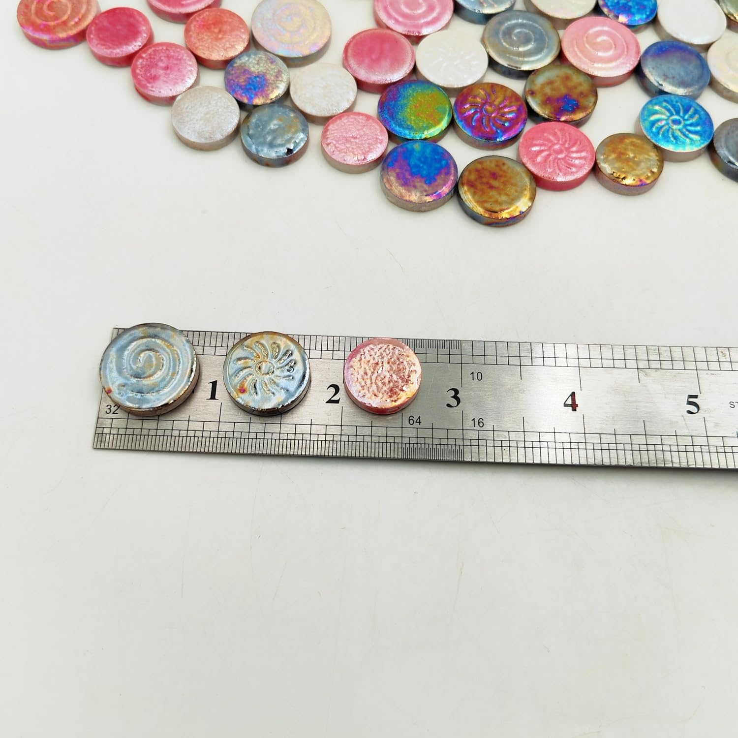 • The Round Ceramic Mosaic Tiles 3 Size: Large Dia,:2cm/0.787inch; Medium Dia.:1.8cm/0.708inch;Small Dia.1.5cm/0.59inch;Thickness: 0.4cm/0.157 inch;About 200 PCS Mix 3 Sized Random Round Mosaic Tiles in a PP Bag