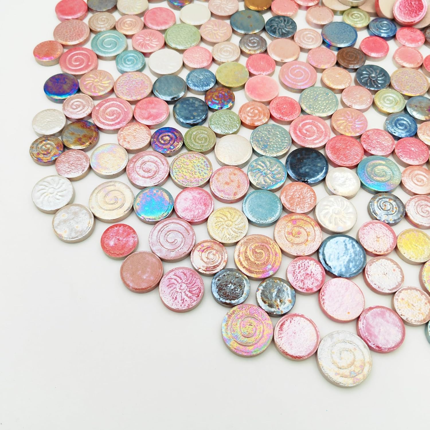 500g/1.1lb Random Color Irregular Ceramics Mosaic Tiles,DIY Making Creative Ceramic Mosaic Tiles for DIY Craft Plates Flowerpots Vases Cups Mosaic Making Supplies (Mix Round)