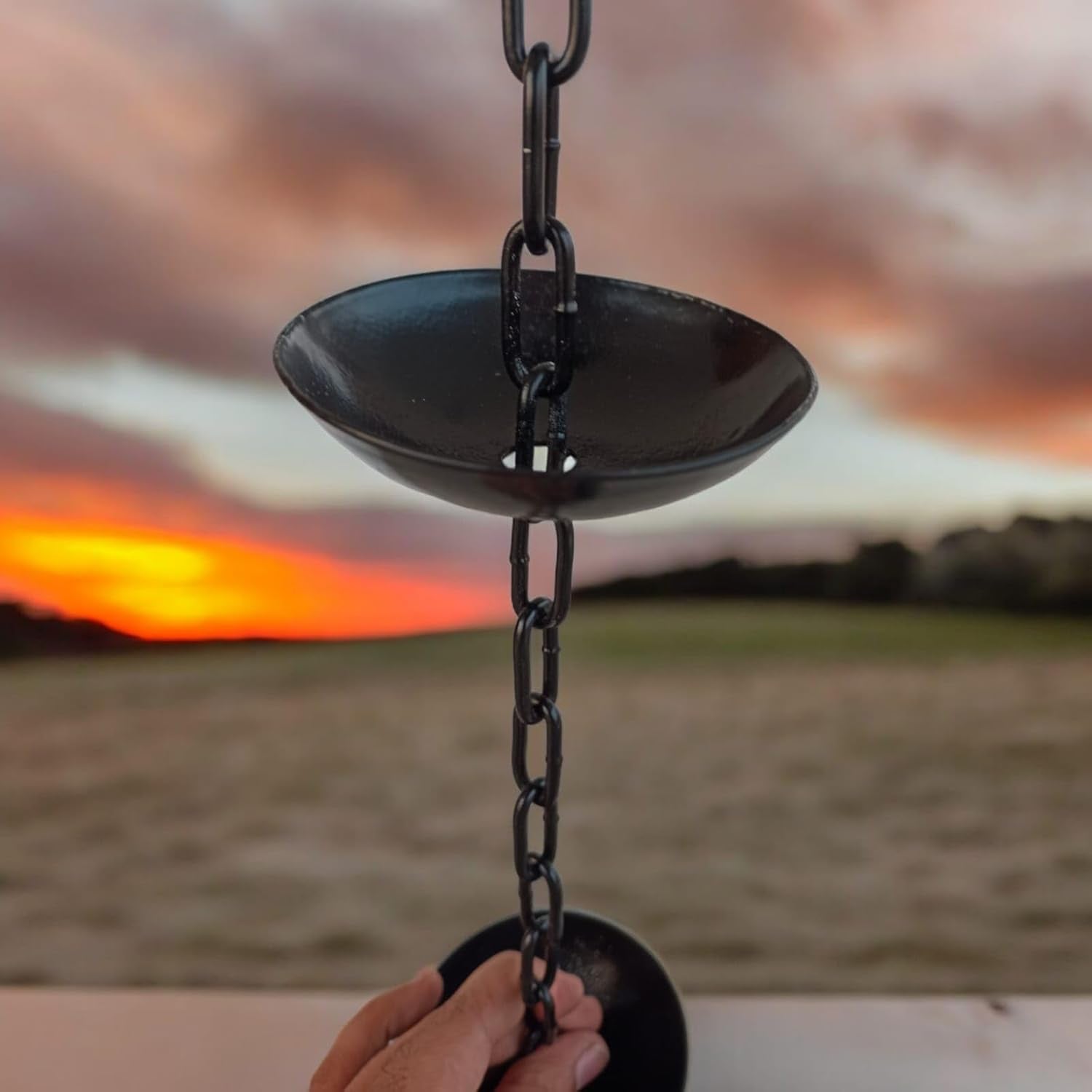 • ✅Made from high-quality materials, the rain chain is durable and built to withstand various weather conditions, ensuring long-term performance. Its sleek black finish not only complements any architectural style but also adds a touch of elegance to your surroundings.