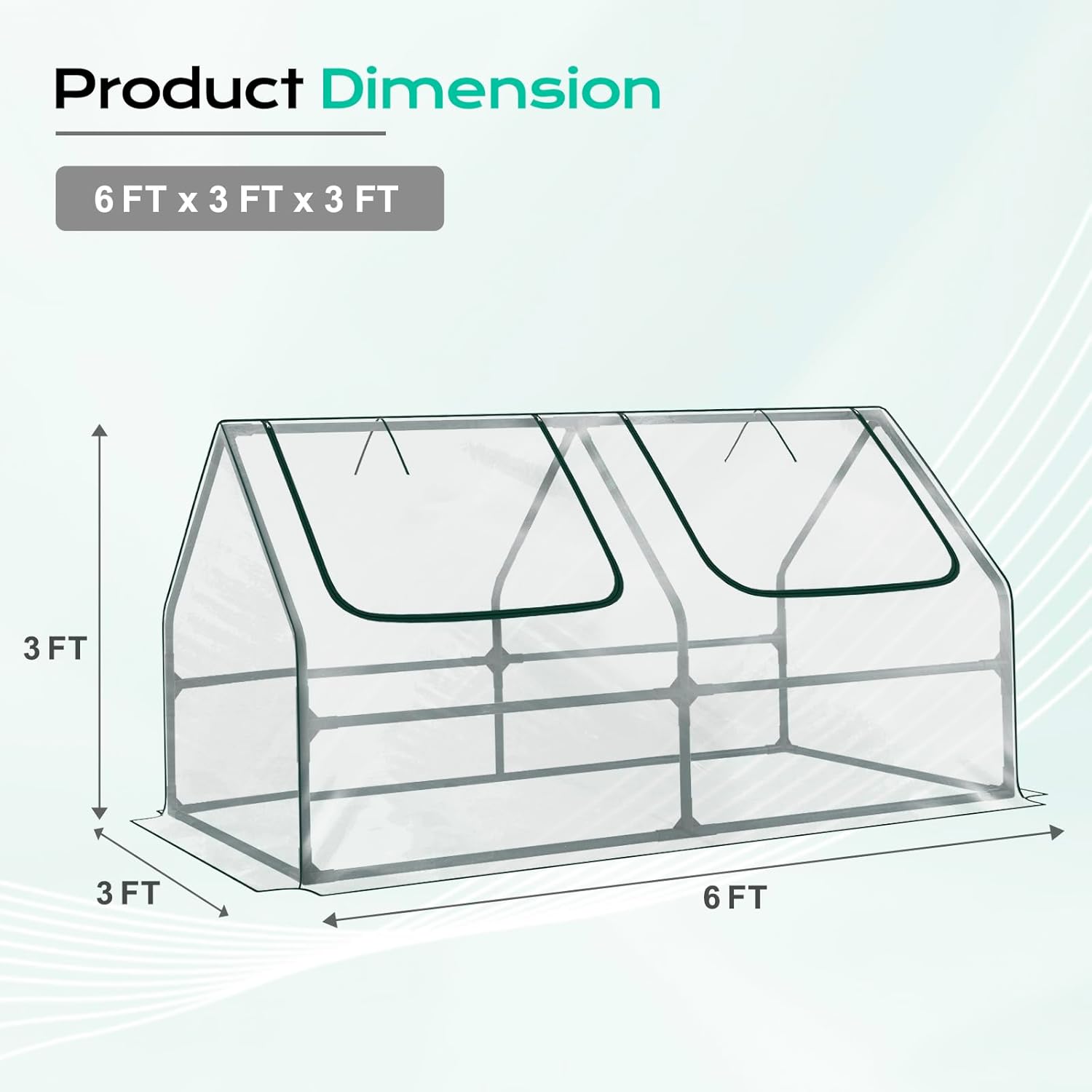 BPS 6x3x3 ft Mini Greenhouse with Transparent PVC Cover UV-Protected Roll-Up Zipper Windows, Ideal for Indoor or Outdoor Use on Raised Garden Beds