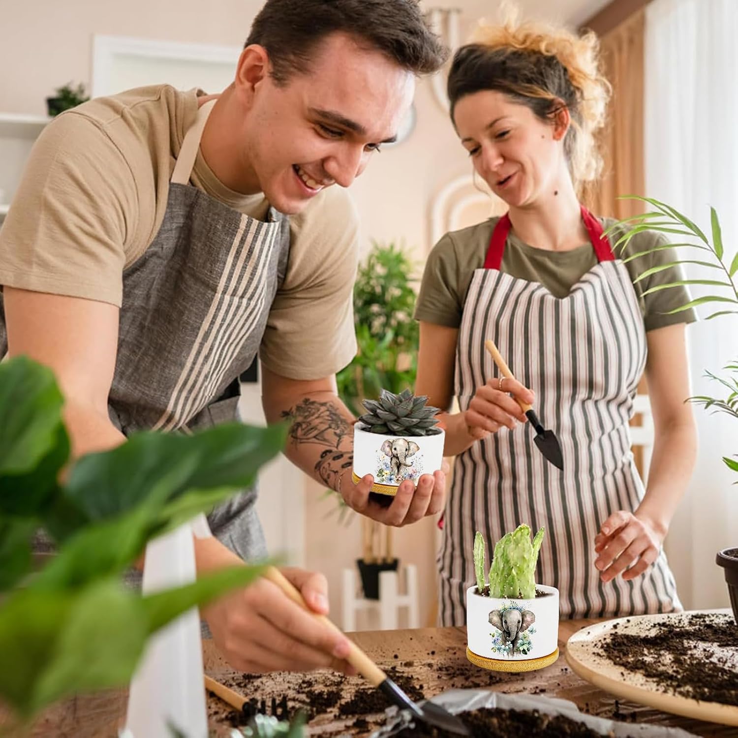 • Gift for Elephant Lover - This elephant succulent planter set elephant themed gifts for women are a perfect gift for any occasion such as birthday,Christmas,Mother's Day or Father's Day, Easter,Thanksgiving,weddings,Valentine's Day,New Year's,graduation,etc.It can be given to elephant lovers,animal lovers,lovers,husbands,wives,mothers,fathers grandmothers,sons,daughters,sisters,girlfriends,friends,teachers,aunts,classmates,co-workers,neighbors,etc plant lover gifts.