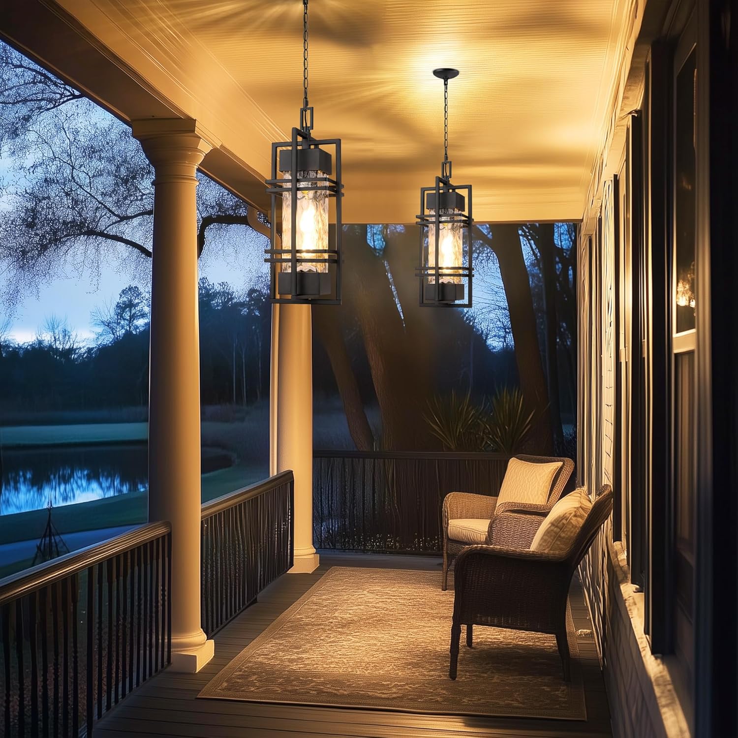 • 💡Corrosion-Resistant & Weatherproof - Made of matte baked enameled metal and thick water-seeded glass, our exterior pendant lights have excellent corrosion resistance and can withstand all kinds of outdoor weather!