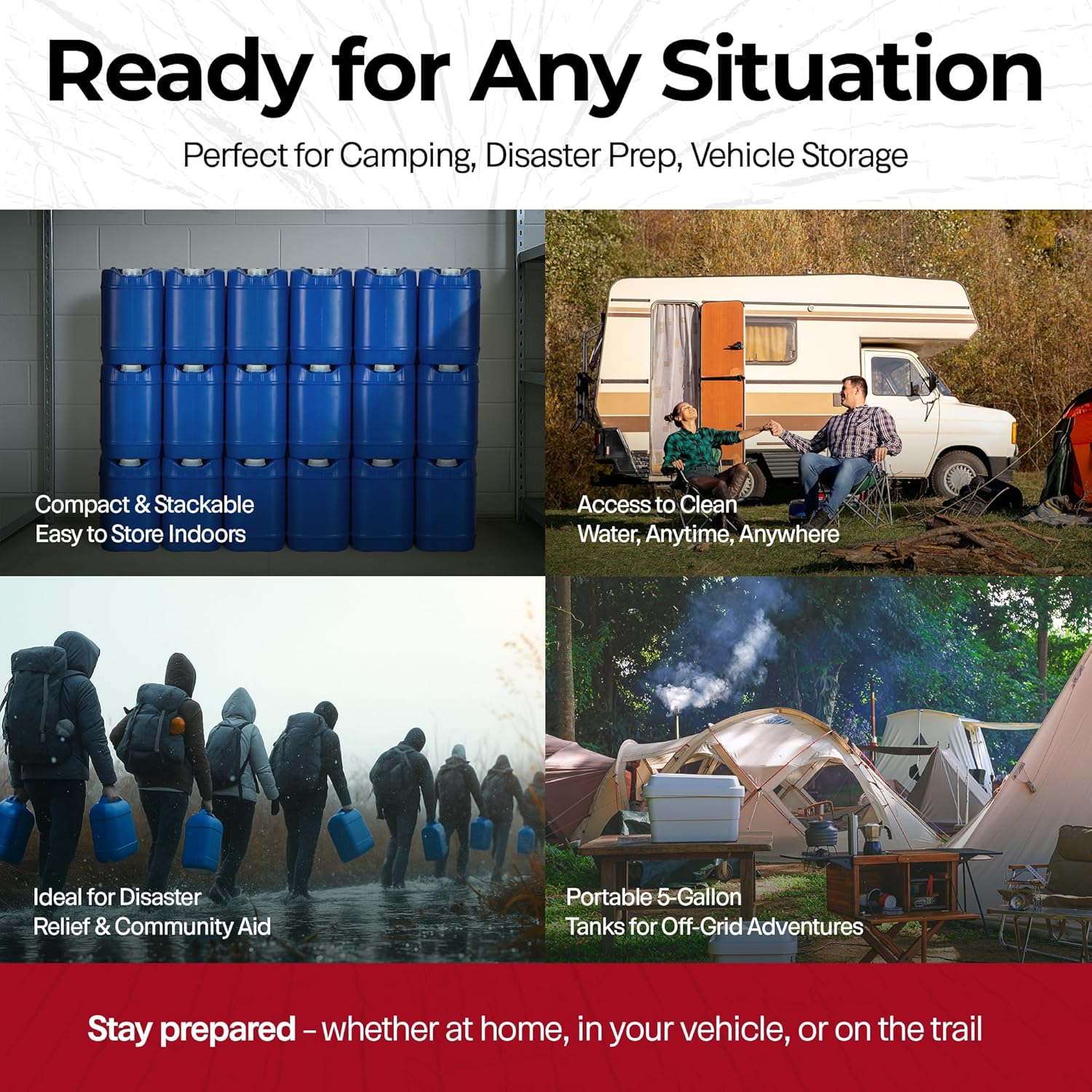 Emergency Water Storage Containers - 5 Gallon Each Water Storage Tank w/Lids + Spigot - Water Storage Container, Emergency Water Container, Survival Storage Tank - Stackable (20 Gallons (4 Tanks))