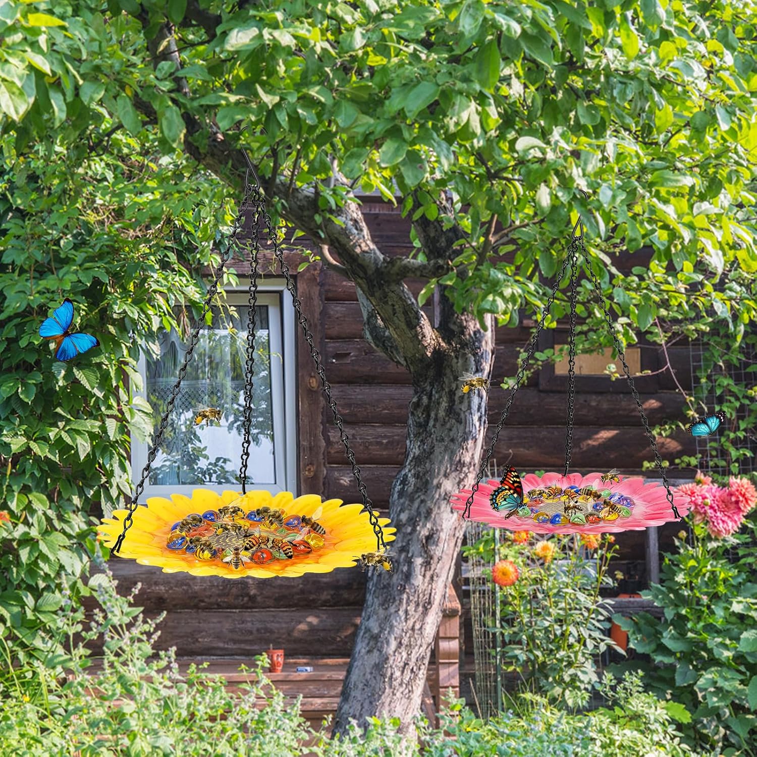 • 【Bee Feeder with Vivid Sunflower Design】 Bee watering station exhibits for feeding a distinctive visually appealing sunflower design that radiates vibrant colors, can appeal bees in your garden or yard, making it a delightful outdoor scene