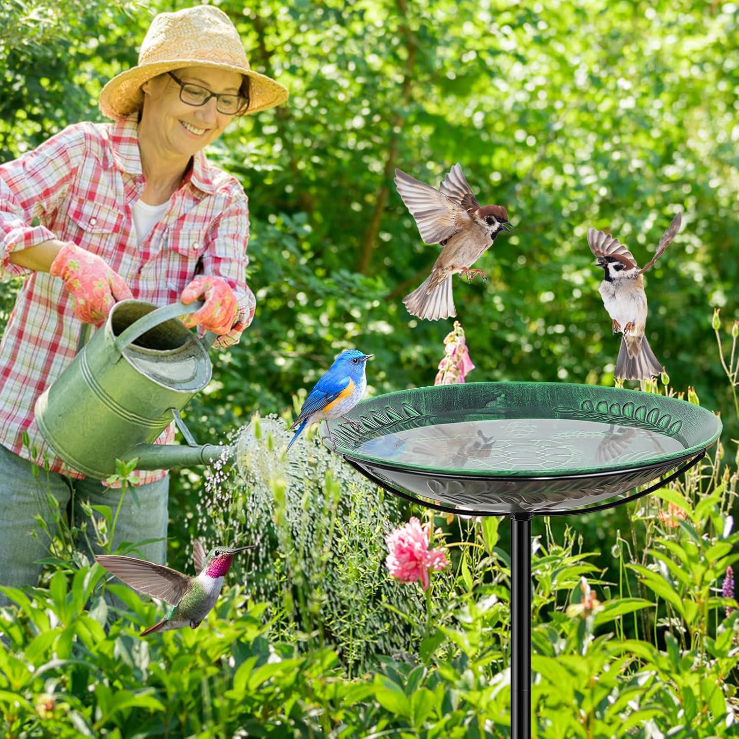 • Best Present:Metal Outdoor Bird Bath/Feeder, the best choice for outdoor decoration, Mother's Day, New Year and other festivals, an ideal present for bird lovers, Enjoy bird watching beautiful colors as wild birds drink and bathe in your bird baths. Keeping your yard or garden full of songbirds all year long!