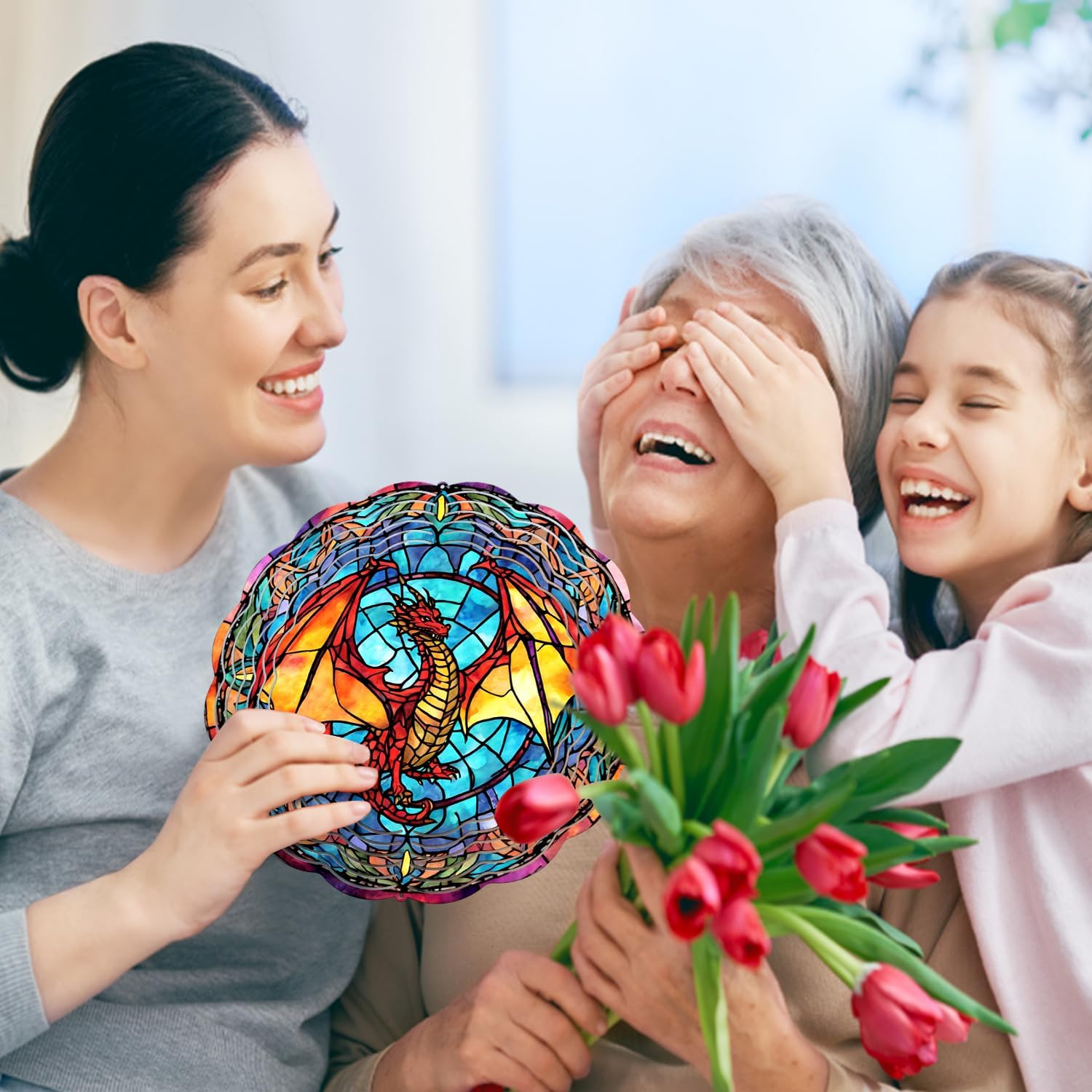 • 【PERFECT GIFT】Elevate your favorite spaces with a touch of elegance and charm. Discover the captivating beauty of our wind spinner, where vivid colors gracefully swirl in the breeze, turning your garden into a stunning display of motion and light with our 3D Animal Wind Spinner stained glass: Horse, Sea Turtle, Bee, Sunflower, Squirrel, Hippie, Dragonfly, Butterfly, Flamingo, Dolphin, Rooster, Farmer, Cow, Cardinal, Garden Gnome, Sloth, Tree of Life, Dog, Cat, and more.