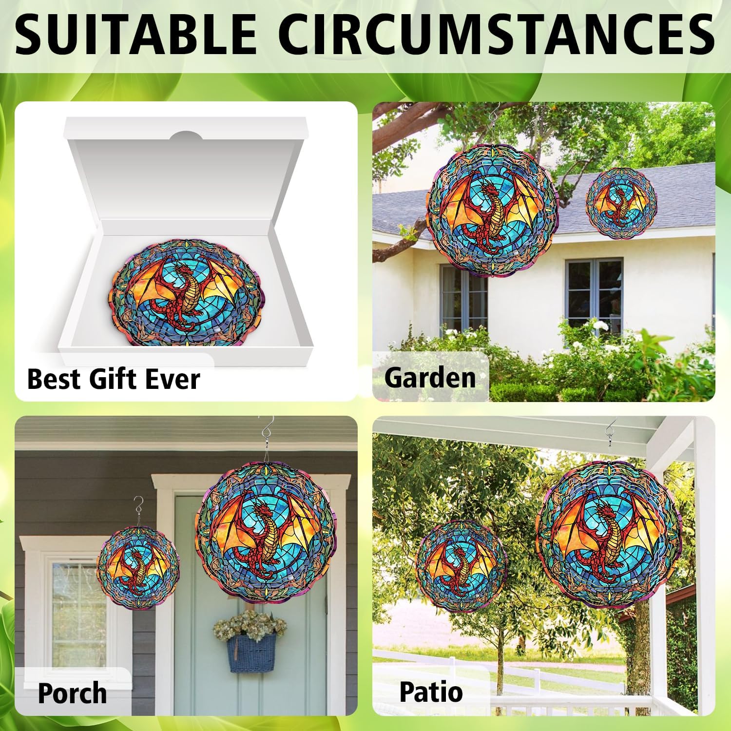 • 【IDEAL SIZE】Our wind spinner, measuring 10x10 inches in diameter, is perfectly sized to adorn your front yard, garden, window, door, car, vehicle, or indoor spaces like the living room, bedroom, or office.