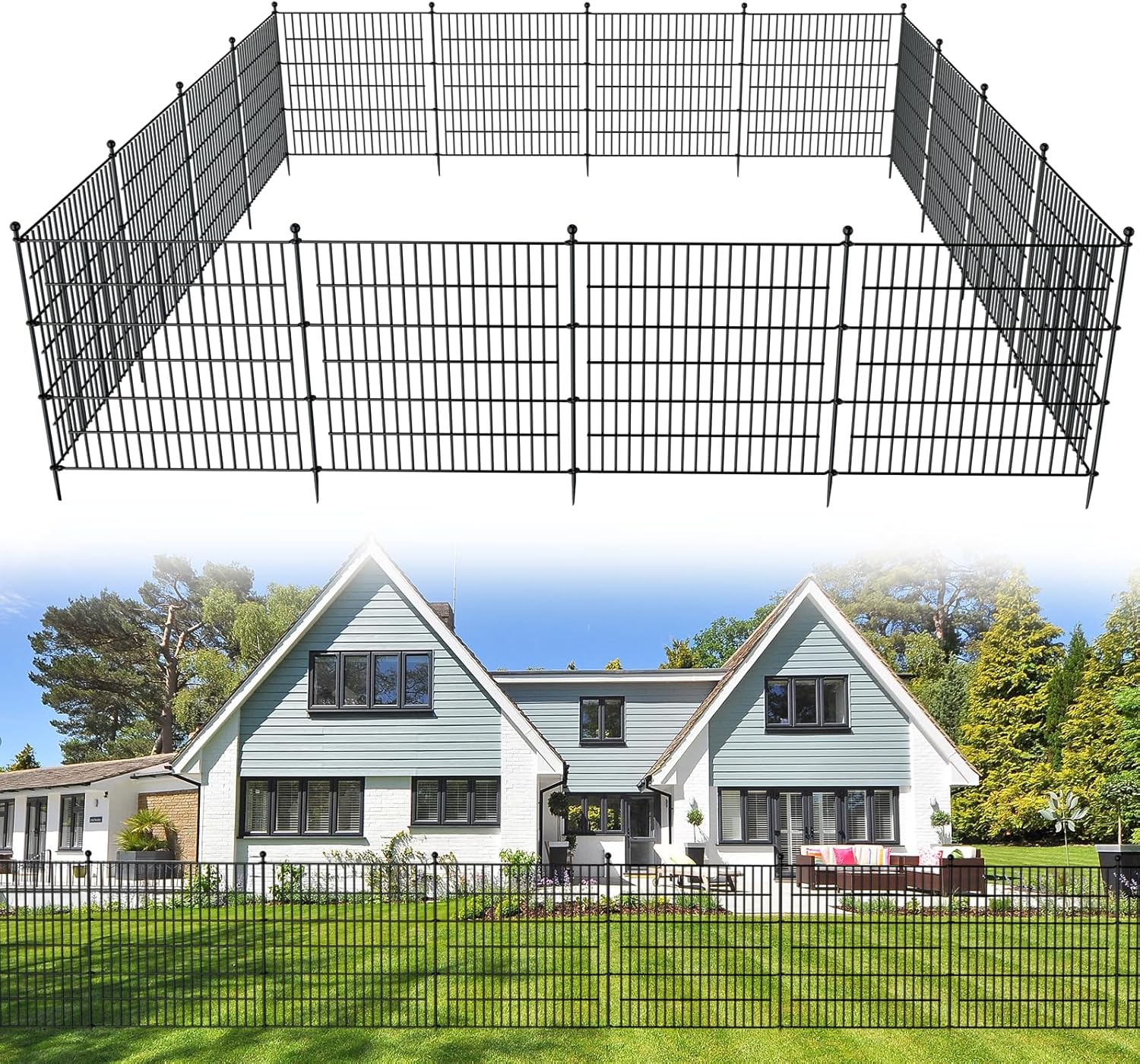 • LOW-MAINTENANCE & RUSTPROOF MATERIAL>>Say goodbye to the hassle of maintaining wooden fences. Our rustproof metal garden fence is made from high-quality wrought iron that won't rot, warp, or fade over time. Enjoy minimal upkeep and years of reliable performance in your yard and garden.