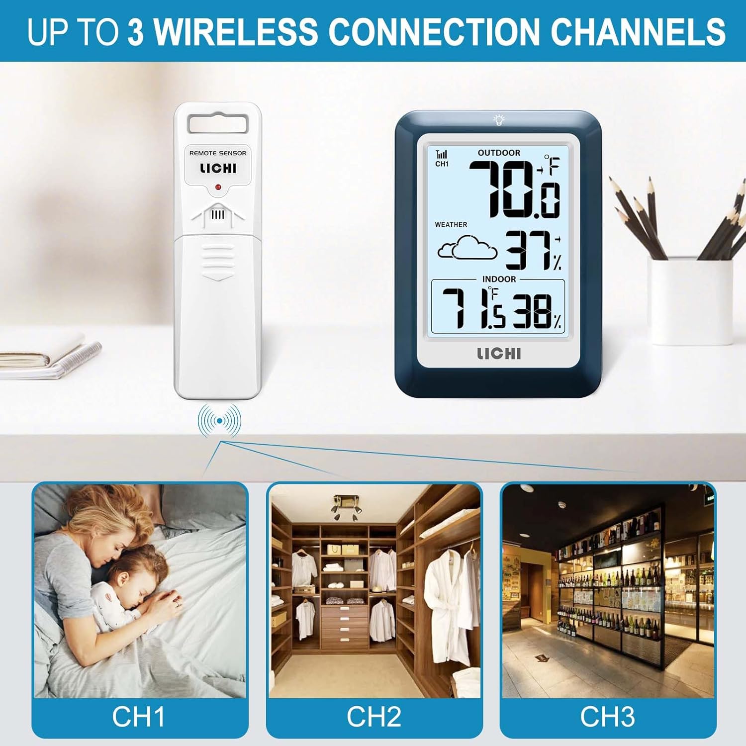 • Easy to set up: Easily set up and install this indoor and outdoor wireless thermometer (indoor thermometer: 3 AAA batteries, not included; remote control: 2 AA batteries, not included). A household thermometer can accommodate up to 3 sensors (packaged with 1 sensor) to help you monitor the location of your greatest concern