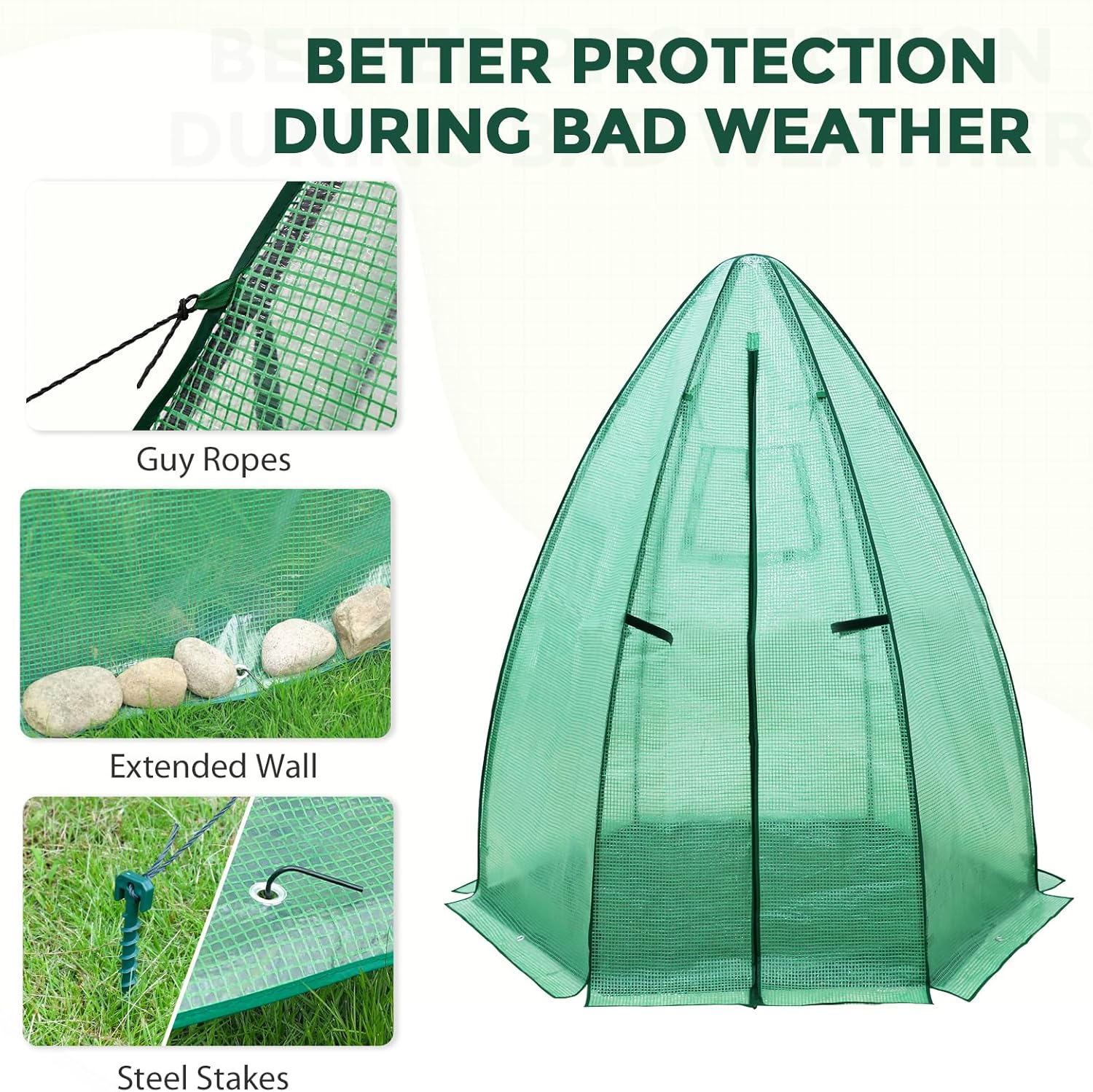 • WIND RESISTANCE & STABILITY: The extended flap on the bottom cover of the small greenhouse can be secured with ground stakes or weighted down with soil, rocks, or weight bags. Additionally, upgraded stakes and tie down ropes are included to improve durability and stability in windier conditions.