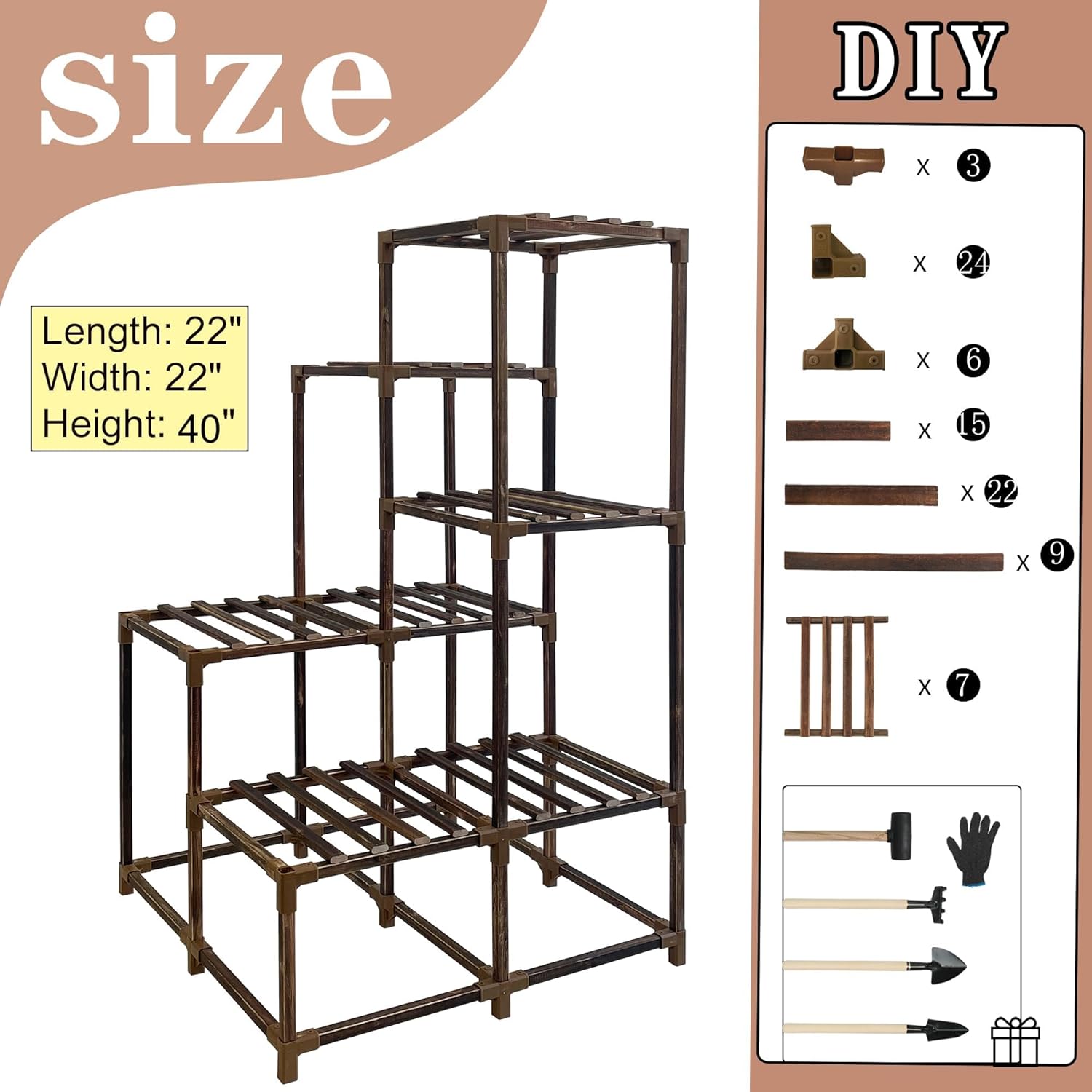 • Large Capacity: The tiered plant stand has 11 tiers which can hold multiple small and medium sized pots, and various heights on the shelf spacing to accommodate the plants, giving the growing plant assortment room to branch out.