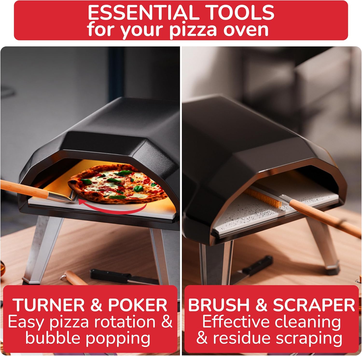 Pizza Oven & Stone Brush with Scraper, Turning Fork & Bubble Popper Bundle - Essential Accessories & Tools for Any Pizza Oven