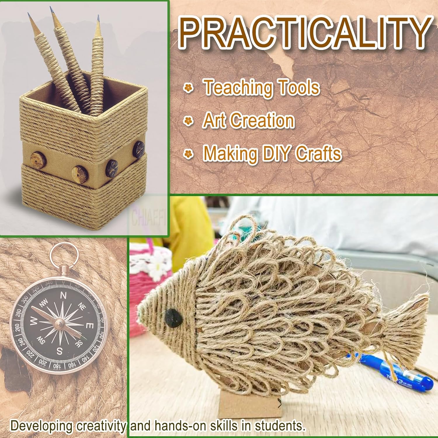 • PRACTICALITY - In the art function room, 2mm twine is widely used as a teaching tool to help students create art and handicrafts, and to develop their creativity and hands-on skills.