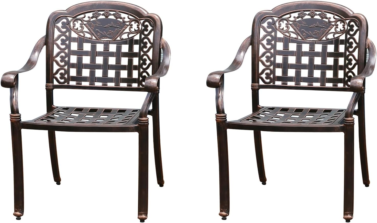 Outdoor Dining Chair Cast Aluminum Patio Chairs Set of 2 All-Weather Patio Dining Chair with Adjustable Feet for Backyard Garden (Positive Lattice Landscape Chair)