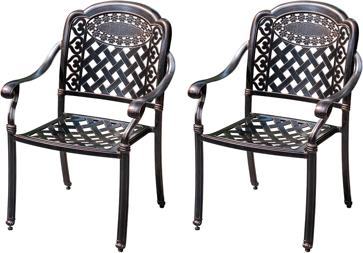 Outdoor Dining Chair Cast Aluminum Patio Chairs Set of 2 All-Weather Patio Dining Chair with Adjustable Feet for Backyard Garden (Slanted Grid Square Chair)