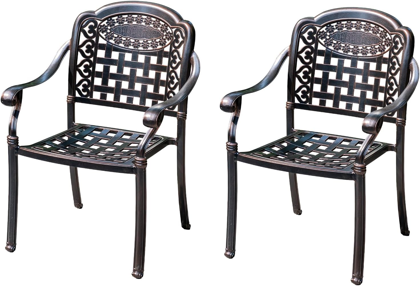Outdoor Dining Chair Cast Aluminum Patio Chairs Set of 2 All-Weather Patio Dining Chair with Adjustable Feet for Backyard Garden (Square Lattice Chair)