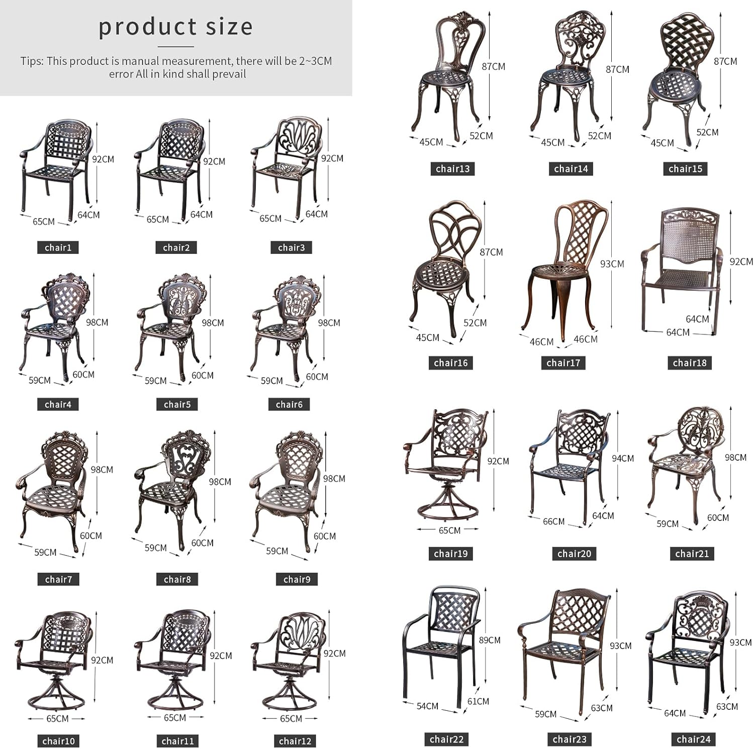 • All weather materials: Made of sturdy cast aluminum with a water-resistant and fade-proof finish. Our patio benches bistro chairs is durability and sunproof, these all-weather features will allow you to use the chairs for a long time
